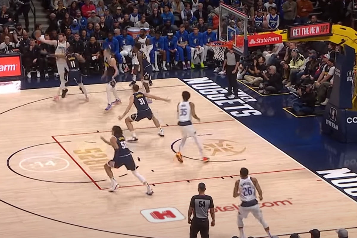 Χωρίς την απαιτούμενη οπτική, αλλά με φανταστική αίσθηση του χώρου ο Σλοβένος σούπερ σταρ των Μάβερικς πέρασε την μπάλα στον συμπαίκτη του από εκεί που δεν γινόταν και σμπαράλιασε μια ολόκληρη αμυντική προσπάθεια από τους Νάγκετς που για κάτι άλλο είχε προετοιμαστεί. Θα δει εύκολα κανείς πως τέσσερις παίκτες μένουν να κοιτούν τι έχει συμβεί, ανήμποροι να επέμβουν.