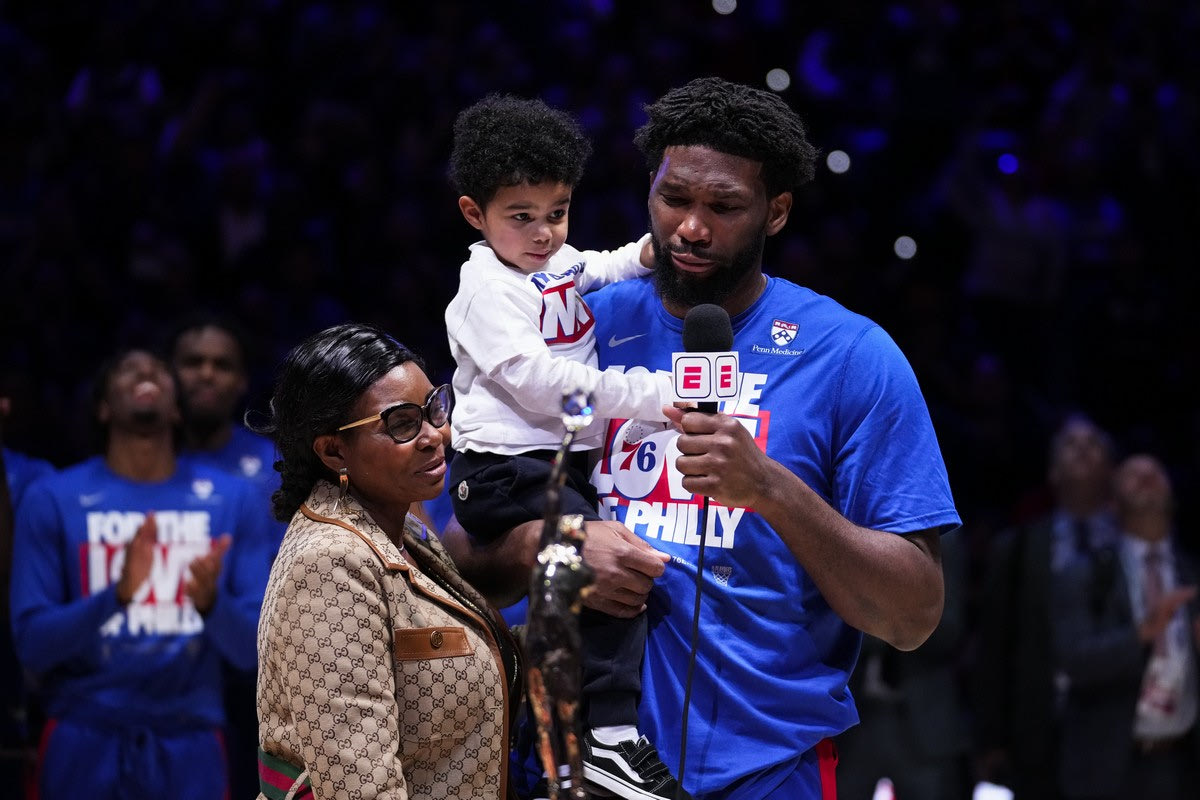 Δυνατές στιγμές για τον Τζοέλ Εμπίντ πριν από το Game 3 των Σίξερς με τους Σέλτικς, αφού παρέλαβε το βραβείο του MVP της κανονικής περιόδου και έβαλε τα κλάματα, έχοντας αγκαλιά τον γιο του.