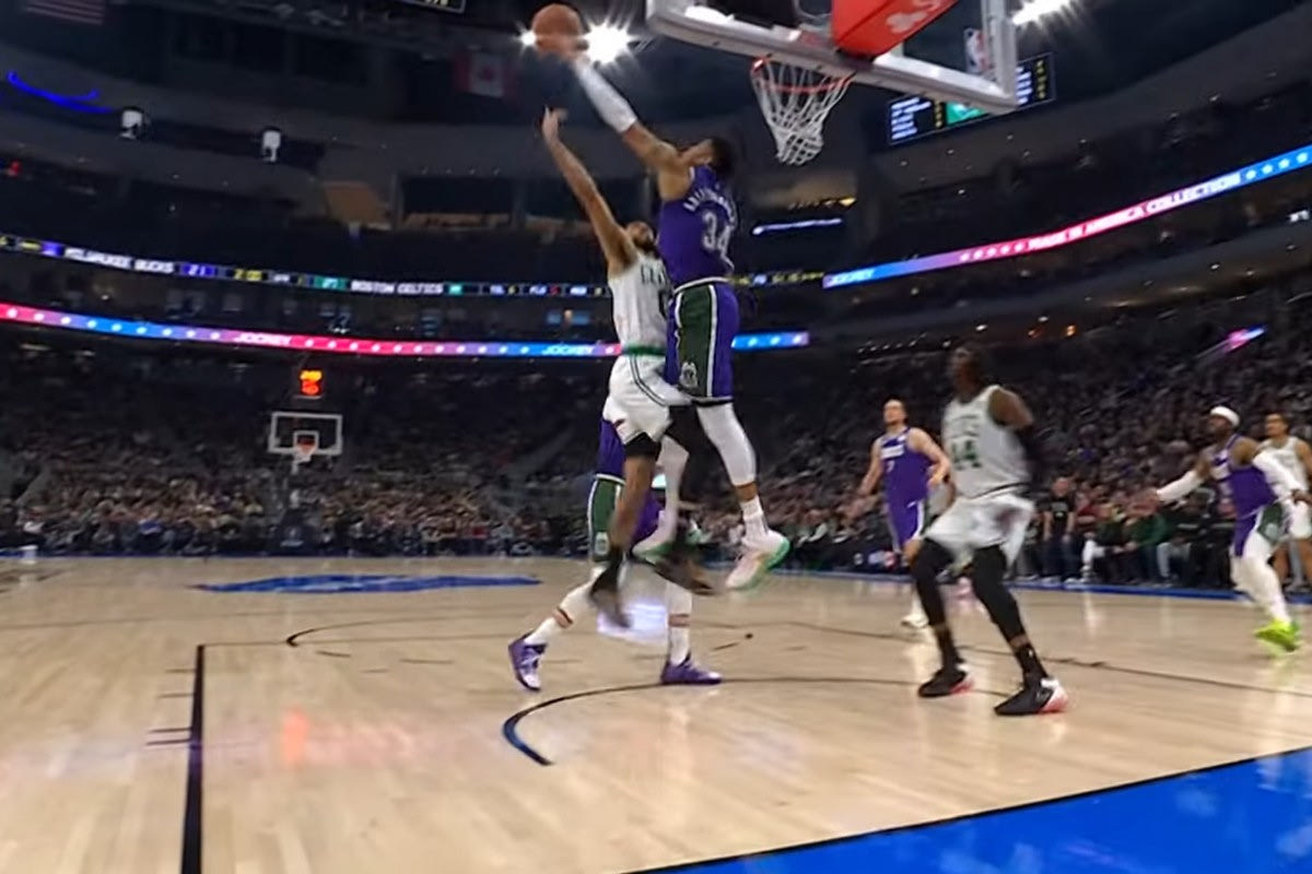 Οι Μπακς δεν έχουν πολλά να θυμούνται από τον αγώνα με τους Σέλτικς, όπου γνώρισαν ντροπιαστική εντός έδρας ήττα με 99-140, ωστόσο ακόμα κι έτσι ο Γιάννης Αντετοκούνμπο συνδύασε σε μία φάση θέαμα και ουσία με μία τάπα στον Τζέισον Τέιτουμ, που του χάρισε το Νο4 στο Top-5 του NBA.