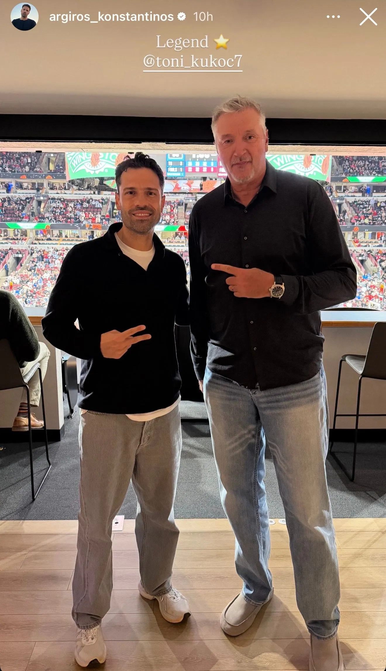 Κατά τη διάρκεια της παρουσίας του στο γήπεδο, ο Αργυρός είχε την ευκαιρία να συναντήσει έναν από τους θρύλους των Μπουλς, τον Τόνι Κούκοτς. Ο Κροάτης παλαίμαχος φόργουορντ αποτέλεσε βασικό μέλος της ιστορικής ομάδας του Σικάγο τη δεκαετία του ’90, όταν οι “Ταύροι” κυριαρχούσαν στο NBA δίπλα στον Μάικλ Τζόρνταν.