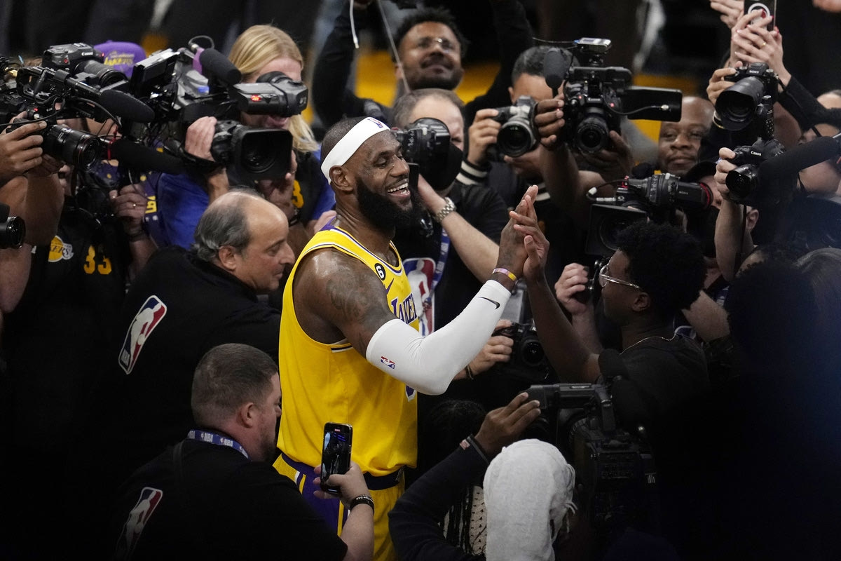 Μετά το ιστορικό καλάθι, ο αγώνας διακόπηκε προκειμένου να τιμηθεί ο “Βασιλιάς”, με τον Αμπντούλ-Τζαμπάρ να του δίνει την μπάλα που συμβολίζει την αλλαγή σκυτάλης και την άνοδο του ΛεΜπρόν στην πρώτη θέση των σκόρερ όλων των εποχών.