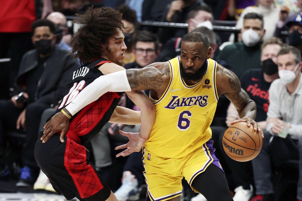 Ο ΛεΜπρόν Τζέιμς των Λείκερς σε αγώνα με τους Μπλέιζερς ⓒ 2022 Steve Dipaola/ Associated Press