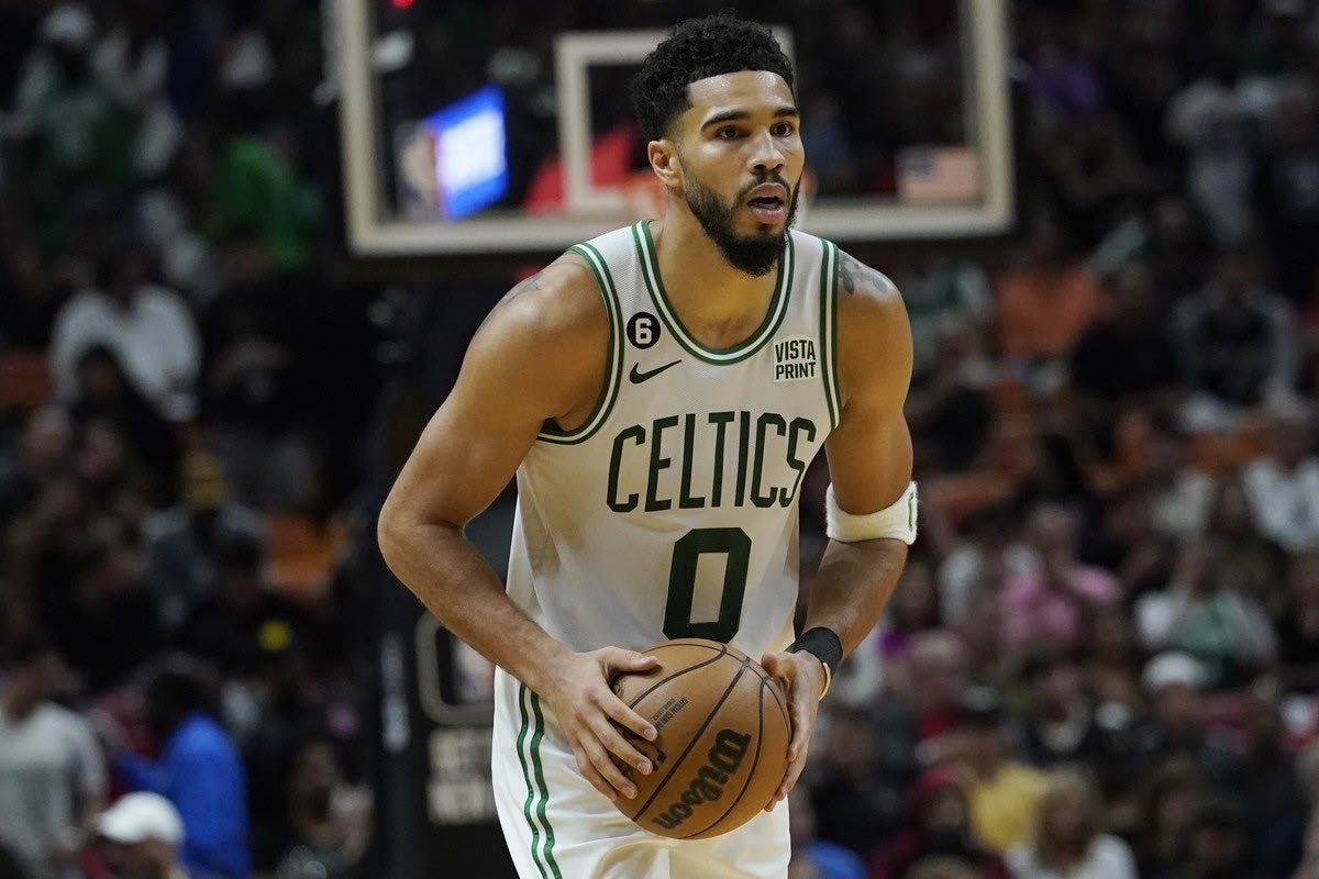 Ο Τζέισον Τέιτουμ με την φανέλα των Σέλτικς ⓒ 2022 Marta Lavandier/ Associated Press