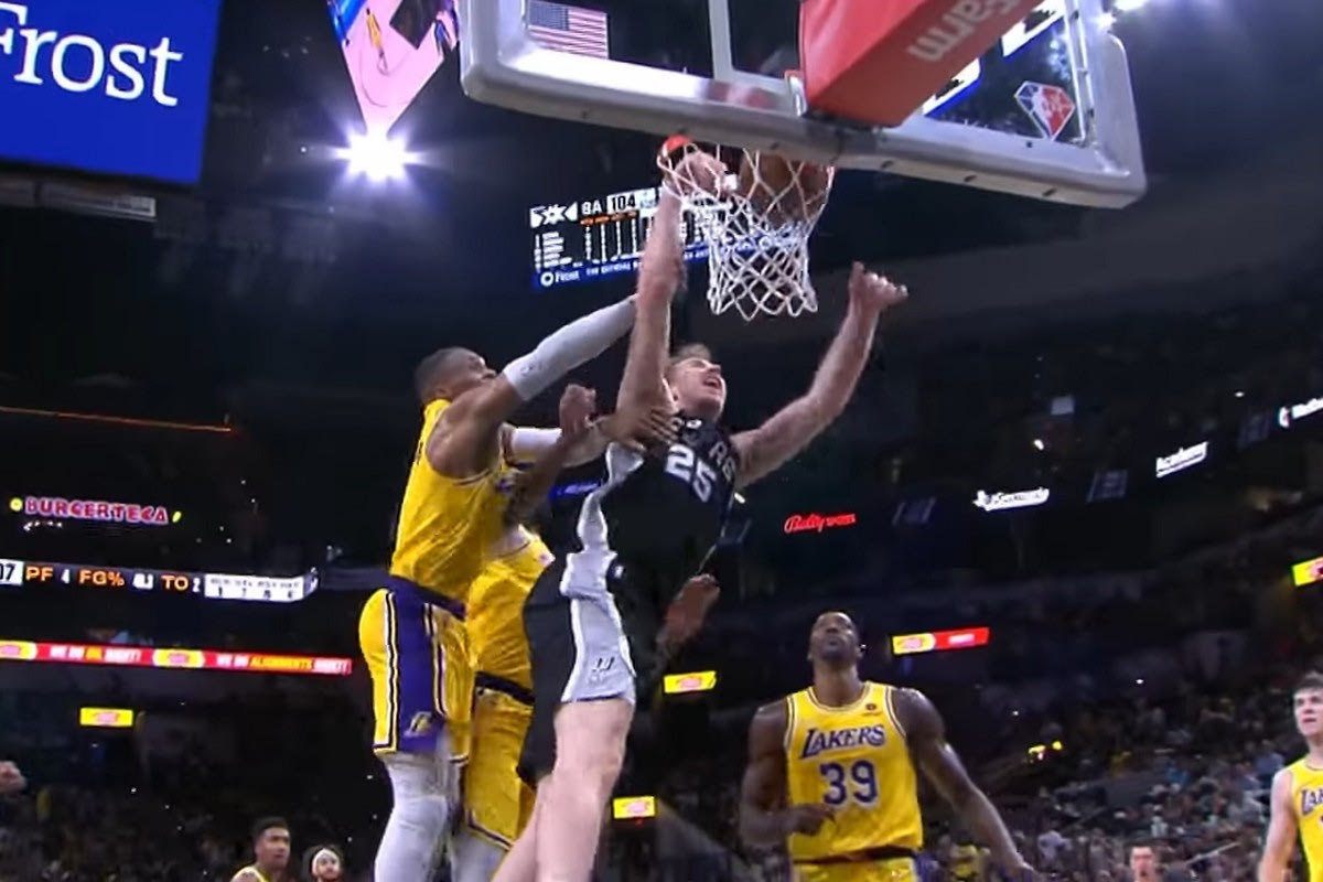 Ο Γιάκομπ Πελτλ των Σπερς έβαλε στα καλάθια τους Λέικερς σε μία φάση, κατακτώντας δικαίως την κορυφή στο Top-10 του NBA.