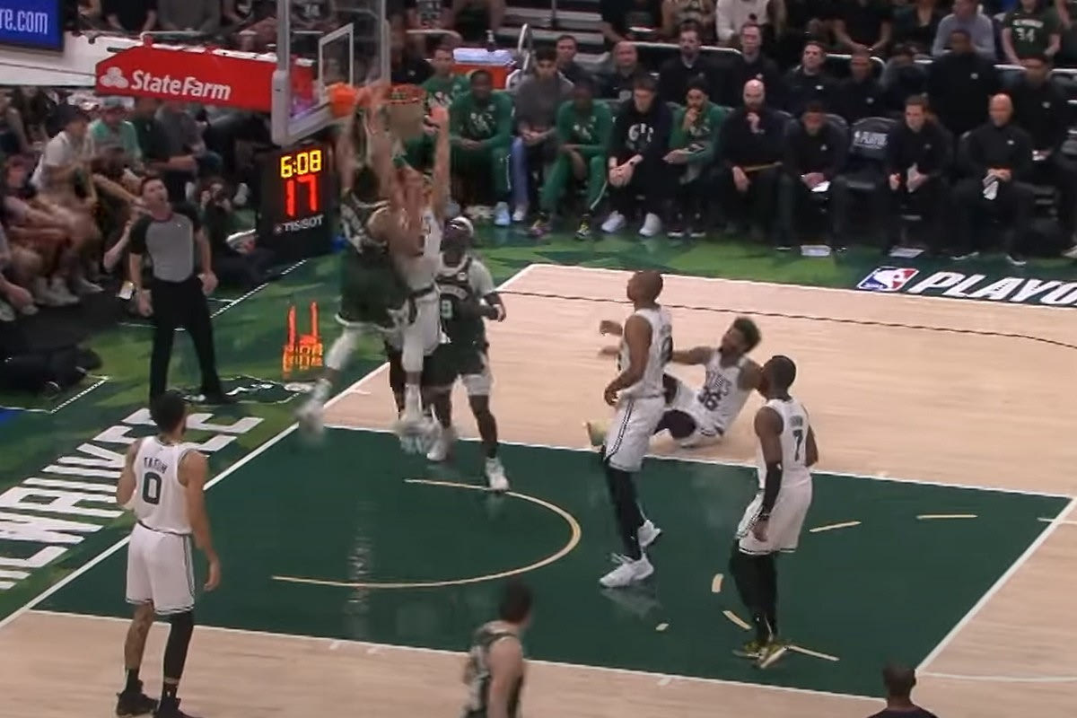 Ο Γιάννης Αντετοκούνμπο συνδύασε πολλές φορές θέαμα και ουσία στο Game 6 με τους Σέλτικς (ήττα με 95-108), αφού ισοπέδωσε τον Μάρκους Σμαρτ, κάρφωσε με όλη την πεντάδα των Σέλτικς γύρω του και έκανε πόστερ τον Γκραντ Γουίλιαμς. Αυτές οι τρεις φάσεις βρίσκονται στο Top-5 του NBA, με το κάρφωμα στο πρόσωπο του Γουίλιαμς να βρίσκεται μάλιστα στο Νο1.