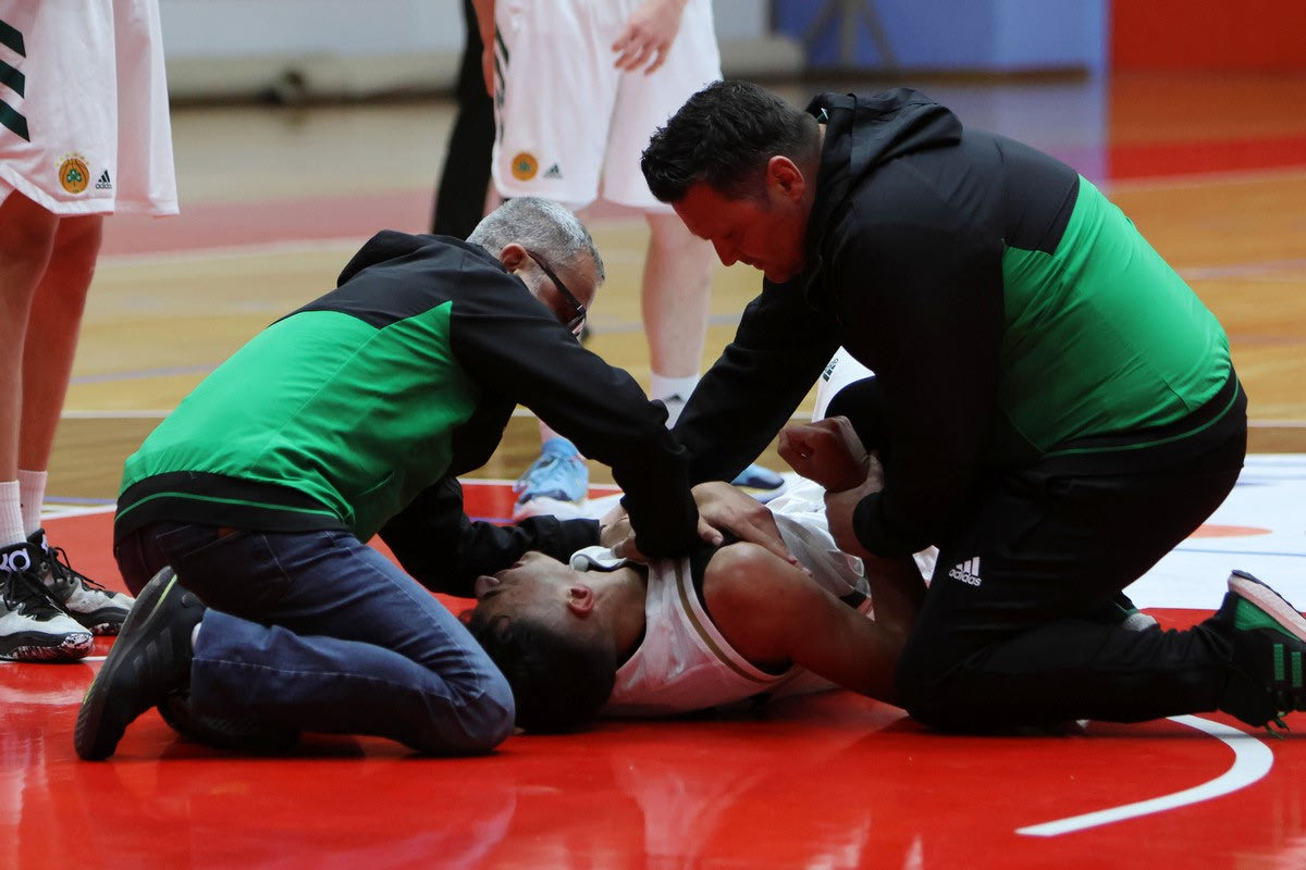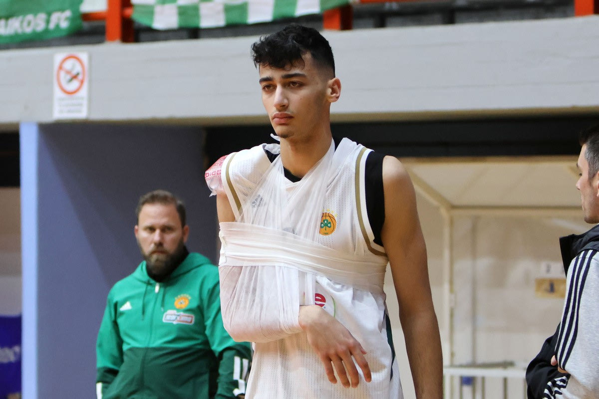 Ο νεαρός ψηλός των πράσινων “κλείδωσε” τα χέρια του στο ποστ με παίκτη της αντίπαλης ομάδας και προσγειώθηκε άτσαλα στο παρκέ, με αποτέλεσμα να σφαδάζει από τον πόνο και να αποχωρήσει από τον αγώνα για να του παρασχεθούν οι πρώτες βοήθειες.