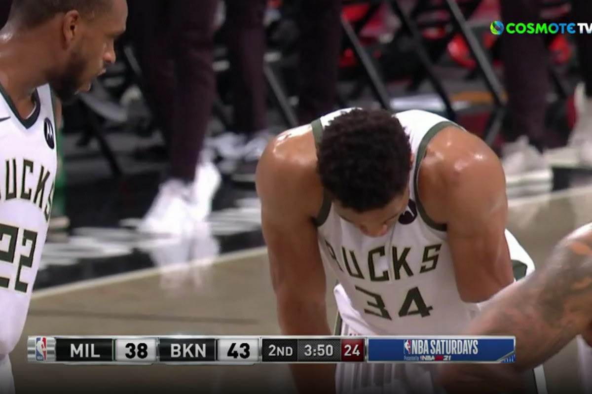 Τρομερά καταπονημένος από την ημιτελική σειρά με τους Νετς, ο Γιάννης Αντετοκούνμπο ξέμεινε από δυνάμεις στη δεύτερη περίοδο και έκανε airball σε βολή με τον προπονητή του να καλεί timeout για να του δώσει ανάσες (VIDEO).