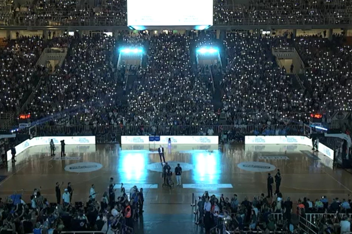 Περισσότεροι από 13.000 φίλαθλοι βρέθηκαν στο κλειστό των Ολυμπιακών Εγκαταστάσεων και με τα κινητά τους συνέβαλαν και αυτή στη δημιουργία εντυπωσιακής ατμόσφαιρας κατά τη διάρκεια της ειδικής εκδήλωσης για τον τεράστιο αθλητή.