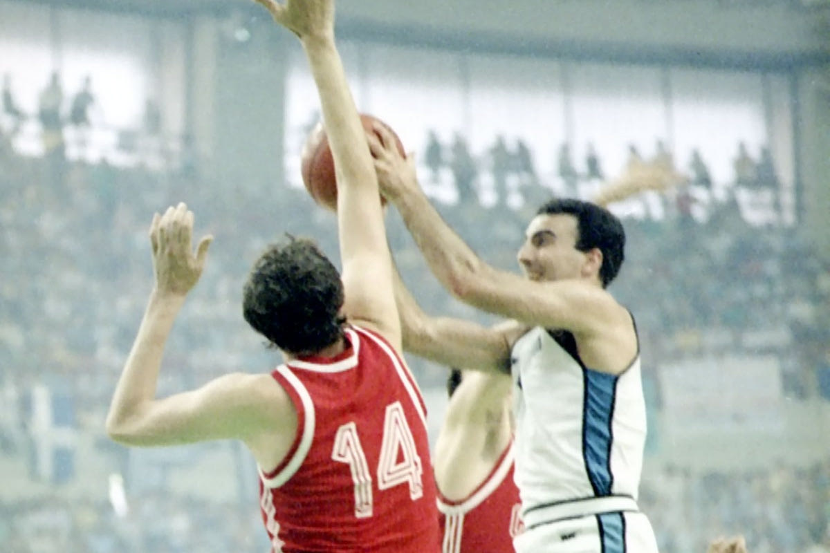 Ο Νίκος Γκάλης 'χορεύει' στον αέρα δύο Σοβιετικούς διεθνείς
