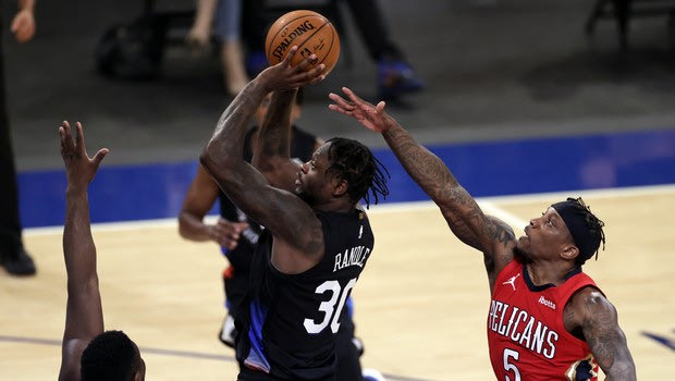 Ένα λάθος του Λόνζο Μπολ έδωσε την ευκαιρία στον Ρέτζι Μπούλοκ να βάλει το μεγαλύτερο σουτ της βραδιάς και να οδηγήσει τον αγώνα στην παράταση, εκεί όπου οι Νιου Γιορκ Νικς επιβλήθηκαν των Νιου Ορλίν Πέλικανς (122-112), για να φτάσουν τις έξι σερί νίκες.