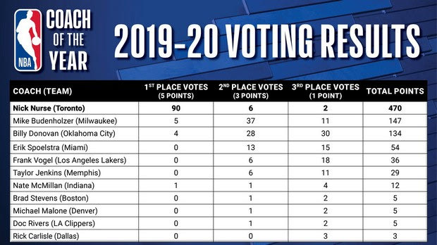 Λίγα μόλις λεπτά πριν από το τζάμπολ του αγώνα ανάμεσα στους Μπακς και τους Μάτζικ, το ΝΒΑ ανακοίνωσε πως ο Νικ Νερς αναδείχθηκε κορυφαίος προπονητής της σεζόν 2019/20.