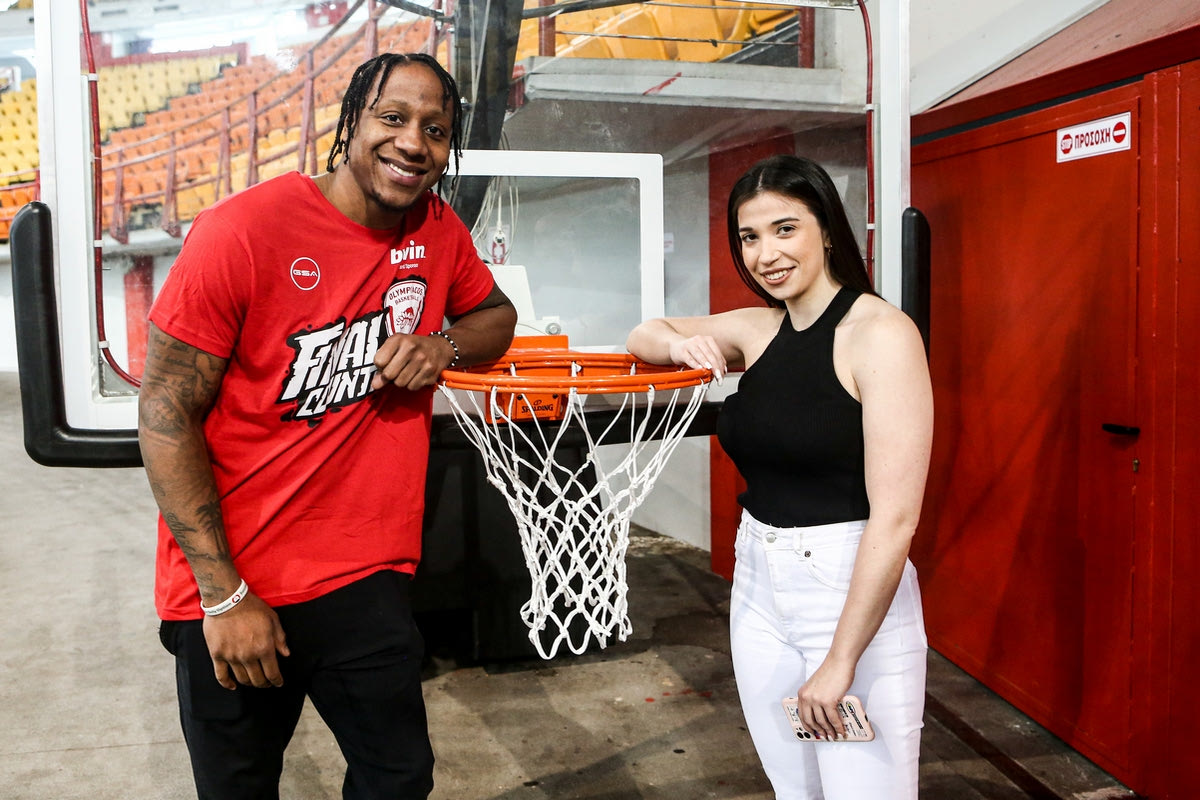Ο Αϊζέια Κάναν και η συντάκτρια του SPORT24, Βασιλική Καραμούζα, στο ΣΕΦ Andreas Papakonstantinou / Tourette Photography
