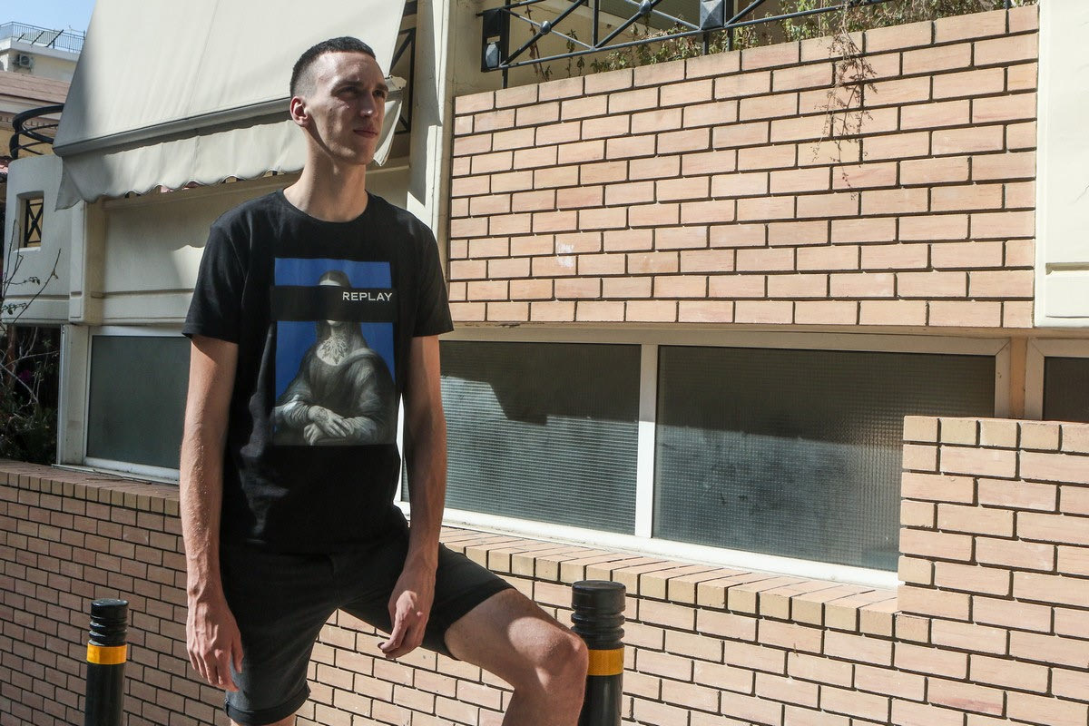 Ο Αλεξέι Ποκουσέβσκι έξω από το σπίτι του στον Πειραιά Photo Credits: Andreas Papakonstantinou / Tourette Photography