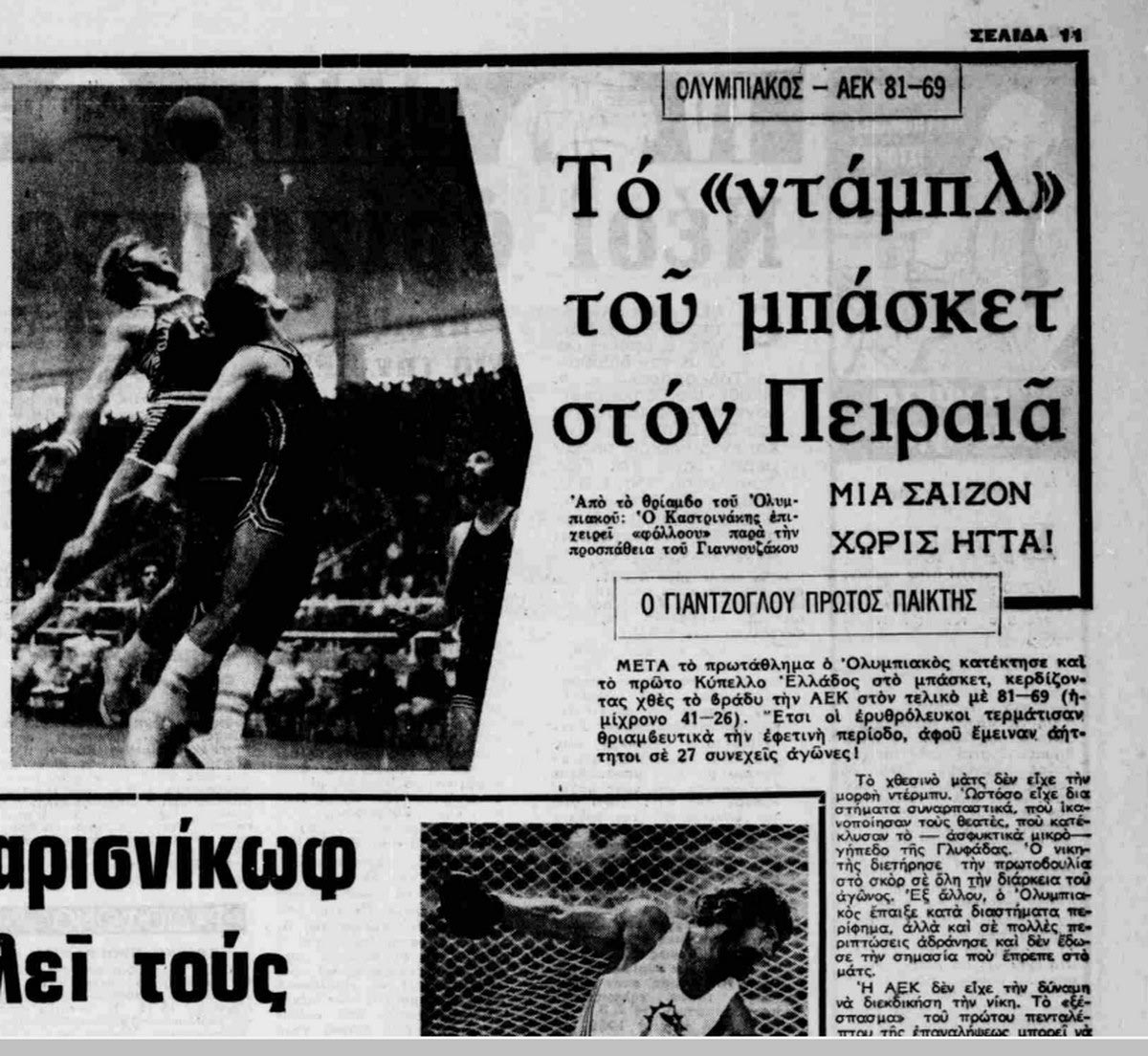 Η Αθλητική Ηχώ για τη νίκη του Ολυμπιακού και το αήττητο νταμπλ του 1976 Αρχείο ΓΙΑΝΝΗ ΦΙΛΕΡΗ