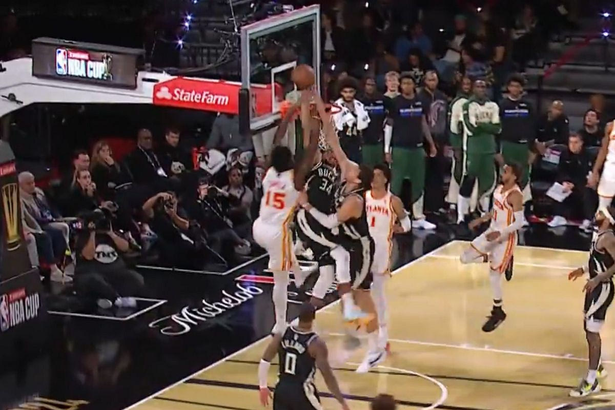 Deja vu έπαθαν όσοι είδαν το φινάλε του ημιτελικού του NBA Cup ανάμεσα στους Μπακς και τους Χοκς. Κι αυτό γιατί ο Γιάννης Αντετοκούνμπο έκανε αναπαράσταση του θρυλικού μπλοκ που είχε πετύχει απέναντι στον ΝτιΆντρε Έιτον στο Game 4 των τελικών του NBA το 2021 με τους Σανς.