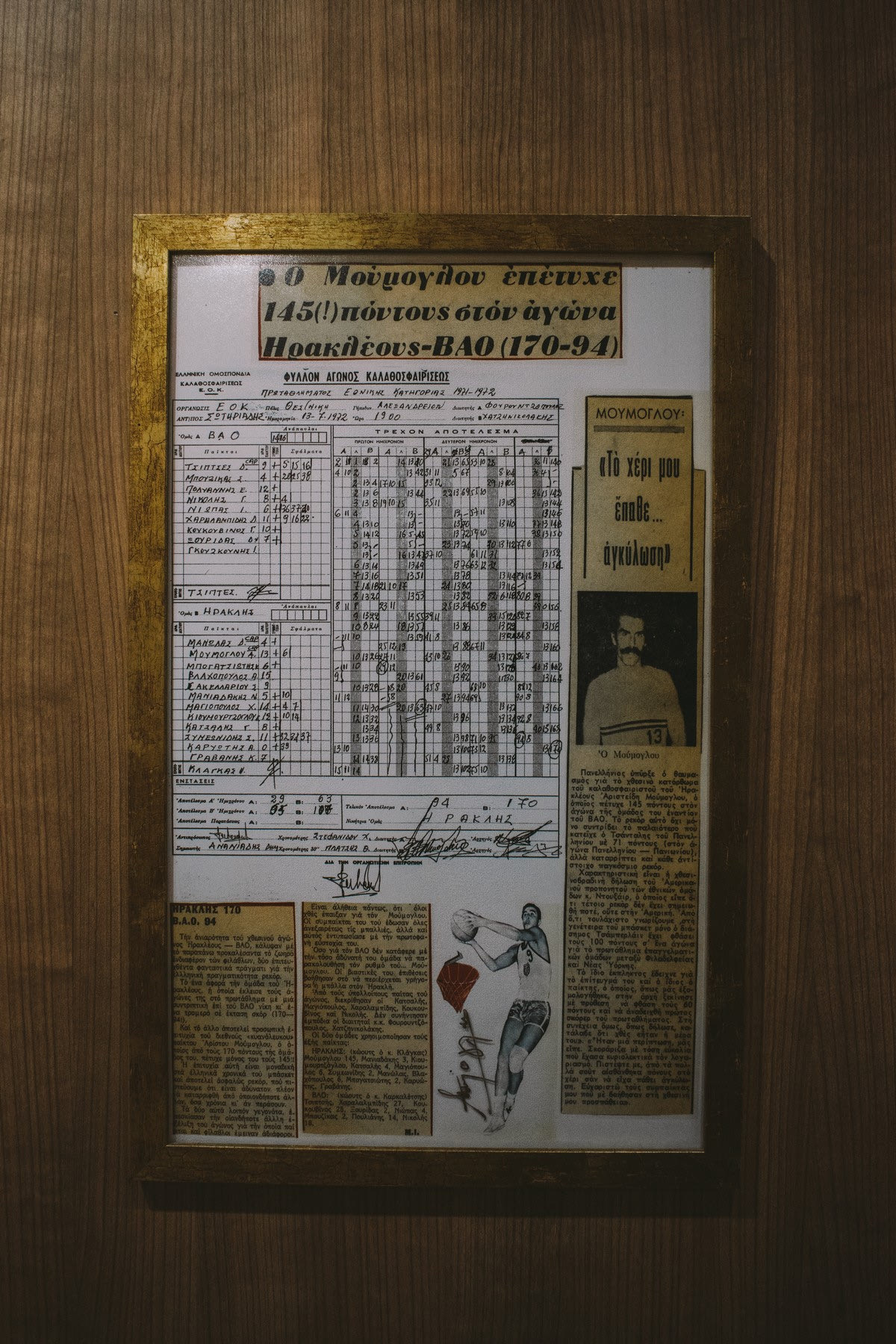 Ο ίδιος θυμάται μερικές πολύ χαρακτηριστικές σκηνές πριν από την έναρξη του ιστορικού αγώνα κόντρα στον ΒΑΟ. “Υπήρχε ένα κίνητρο για εκείνο το ματς. Πρώτος σκόρερ μέχρι εκείνη τη μέρα στο πρωτάθλημα ήταν ο Μάγλος του Παγκρατίου. Πριν από το παιχνίδι συζητήσαμε με τον προπονητή και τους συμπαίκτες μου, προκειμένου η μπάλα να πηγαίνει τις περισσότερες φορές σε μένα και να τελειώνω τις επιθέσεις. Και έτσι έγινε τελικά. Που να φανταστώ, όμως, πως θα βάλω 145 πόντους. Όταν είδα το φύλλο αγώνος στο τέλος κατάλαβα τι είχα κάνει. Μέχρι τότε δεν είχα αντιληφθεί καν πως είχα περάσει τους 100 πόντους. Δεν γίνεται να μετράς όσο παίζεις. Στο μυαλό μου είχα να σκοράρω, όχι να μετράω πόντους“.