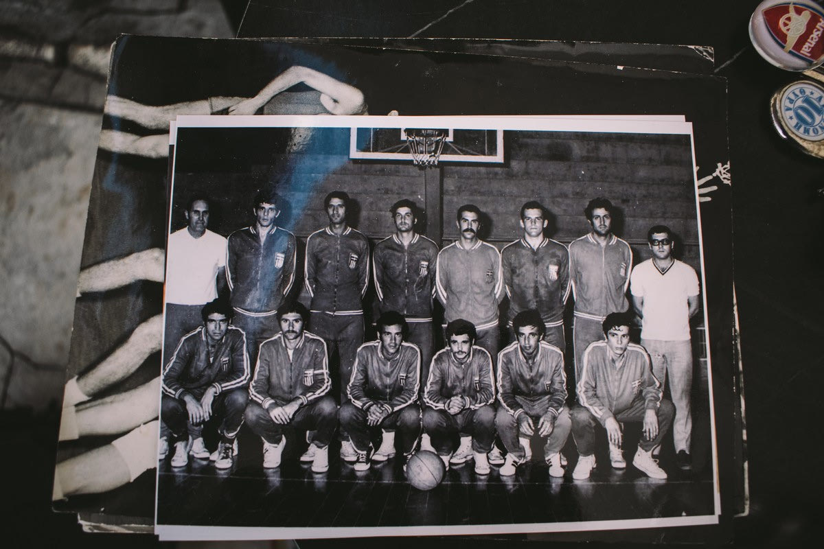 Μαζί του κρατά και μερικές ασπρόμαυρες φωτογραφίες που έχει ακόμη στα αρχεία του από εκείνα τα χρόνια. Αρχίζει να μας της δείχνει με προσοχή. “Κοιτά εδώ. Φορούσαμε ελβιέλα ρε φίλε. Πηδούσαμε για το σουτ και όταν σκάγαμε κάτω, μας πονούσαν τα πόδια. Δεν προστάτευαν τους αστραγάλους. Και εμείς τότε δεν κάναμε ούτε διατάσεις, ούτε βάρη, τίποτα. Τρεις προπονήσεις τη βδομάδα και ματς. Καμία σχέση με σήμερα“.