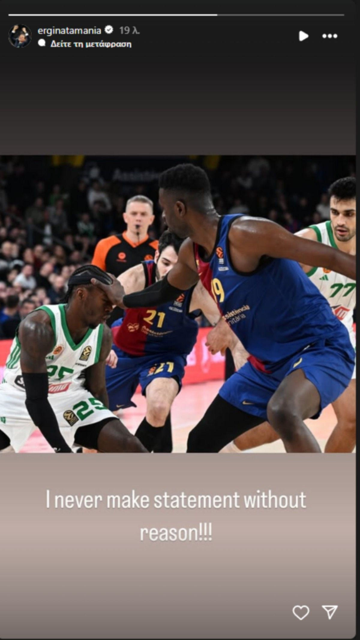 Με ένα post στον επίσημο λογαριασμό του στο Instagram, όπου δείχνει τον Κέντρικ Ναν να δέχεται φάουλ, ο Εργκίν Αταμάν θέλησε να δώσει ακόμα μεγαλύτερη βάση στα λεγόμενά του για την σκληρή άμυνα της Μπαρτσελόνα και τα παράπονα που έχει από τους διαιτητές, αναφέροντας ότι είχε λόγο που προχώρησε σε αυτές τις δηλώσεις.