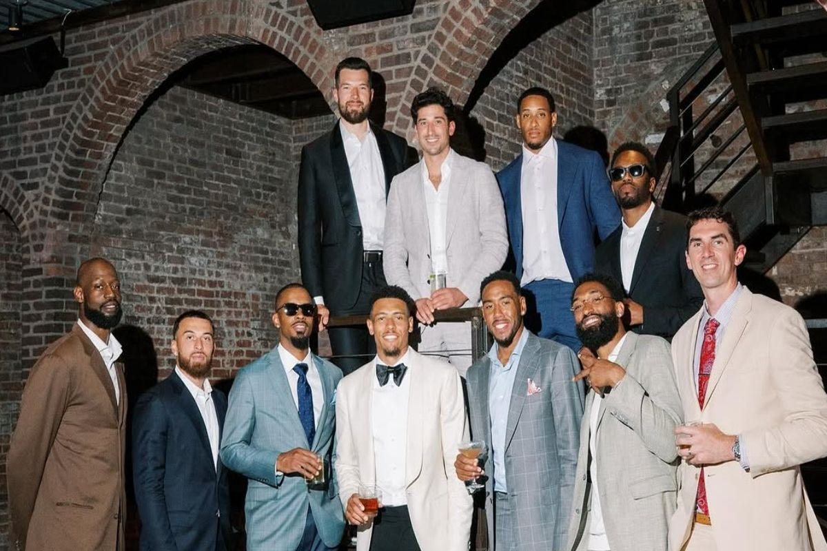 Συγκεκριμένα, στη φωτογραφία παρατηρούμε καλοντυμένους τους Τζέιμς Γκιστ, Μάικ Τζέιμς, Λορέντζο Μπράουν, Μπόνζι Κόλσον, Νταρούν Χίλιαρντ, Τζέικ Κοέν, Άλεκ Πίτερς, Τζον ΝτιΜπαρτολομέο, Όγκουστιν Ρούμπιτ και Αντόνιους Κλίβελαντ.