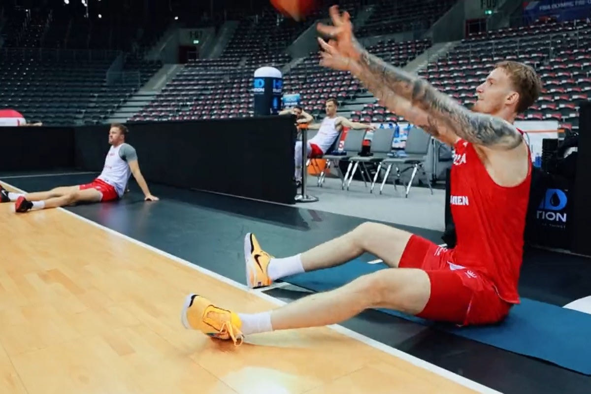 Σε μεγάλα κέφια ο Αλεκσάνταρ Μπαλτσερόφσκι, ολοκλήρωσε την προπόνηση με την εθνική Πολωνίας ευστοχώντας καθιστός στο παρκέ σε σουτ από τα 15 μέτρα.