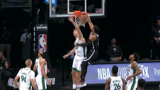 Ο Μπρους Μπράουν των Νετς όρμησε με φόρα και κάρφωσε στο πρόσωπο του Λουκ Κορνέτ των Σέλτικς, κατακτώντας δικαίως το Νο1 στο Top-10 του ΝΒΑ.