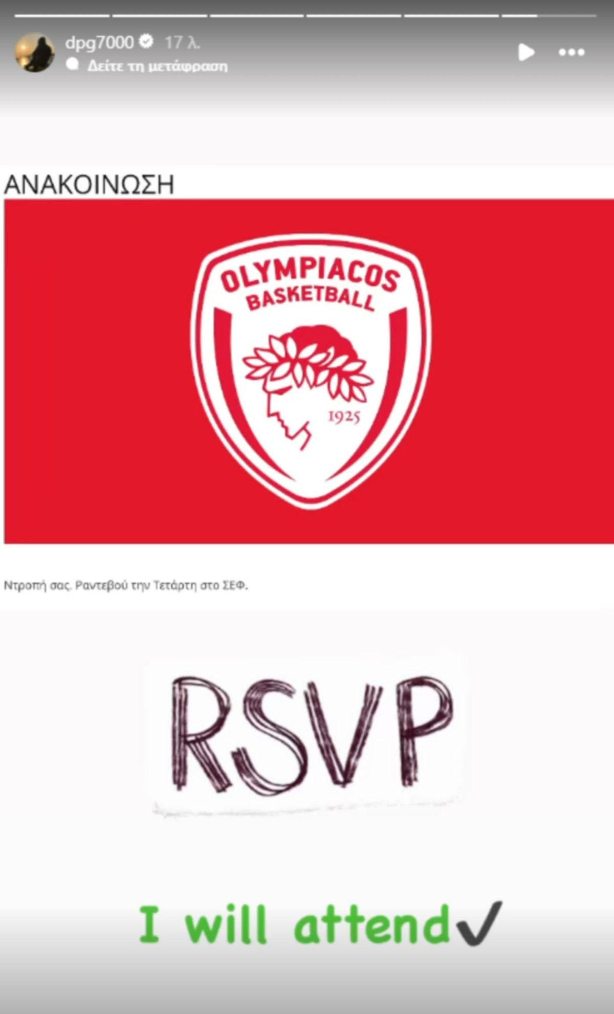 Με story στο Instagram, ο Δημήτρης Γιαννακόπουλος ενημέρωσε ότι θα ηγηθεί της αποστολής του Παναθηναϊκού το βράδυ της Τετάρτης (12/6) στο ΣΕΦ.