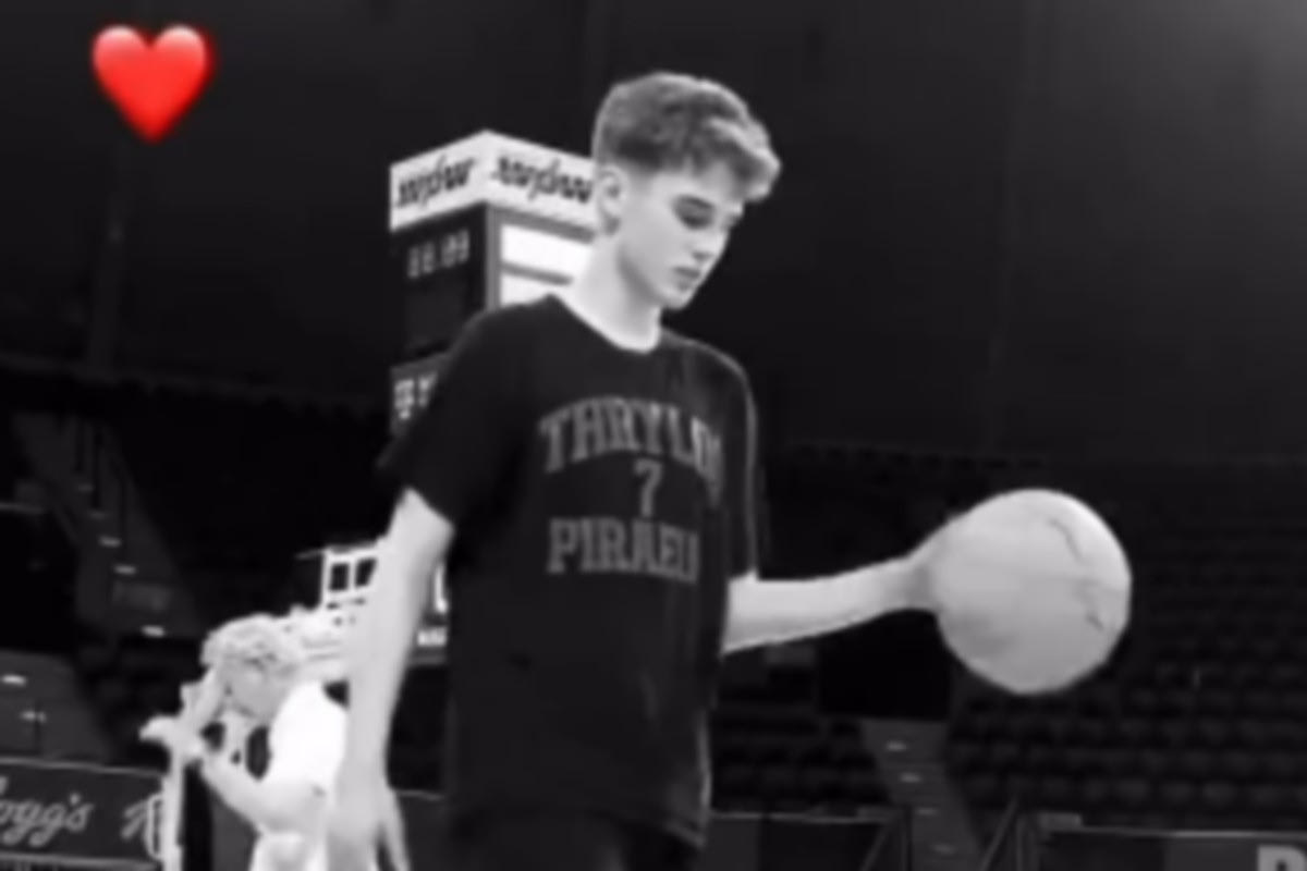 Παρόλ’ αυτά, ο εγγονός του έχει κάτι… ερυθρόλευκο. Έστω κι αν μιλάμε για ένα μπλουζάκι. Ο 18χρονος γκαρντ της Μπάγερν Μονάχου (σ.σ. αγωνίζεται στα τμήματα υποδομής του γερμανικού συλλόγου) έκανε ατομική προπόνηση στο Audi Dome με μπλουζάκι του Ολυμπιακού.