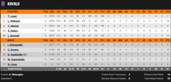 Τα στατιστικά της Καβάλας στην αναμέτρηση