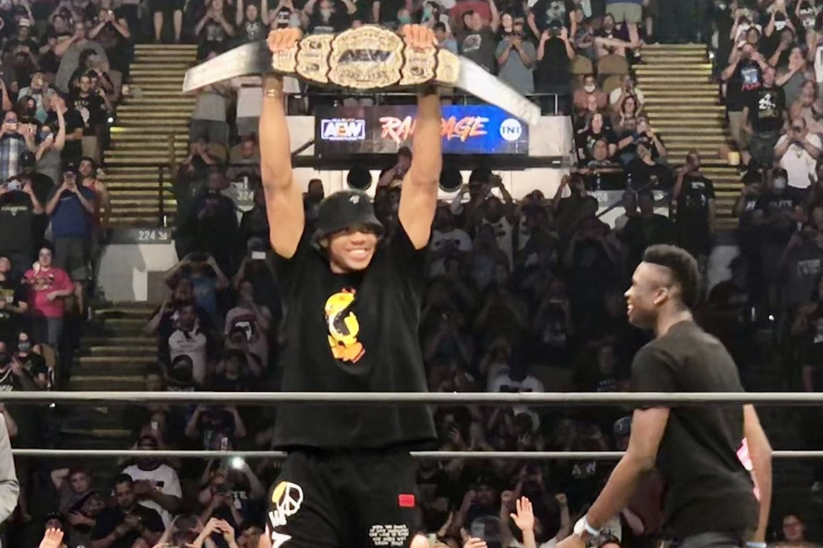 Ο Γιάννης Αντετοκούνμπο με τη ζώνη του πρωταθλητή σε αγώνα wrestling