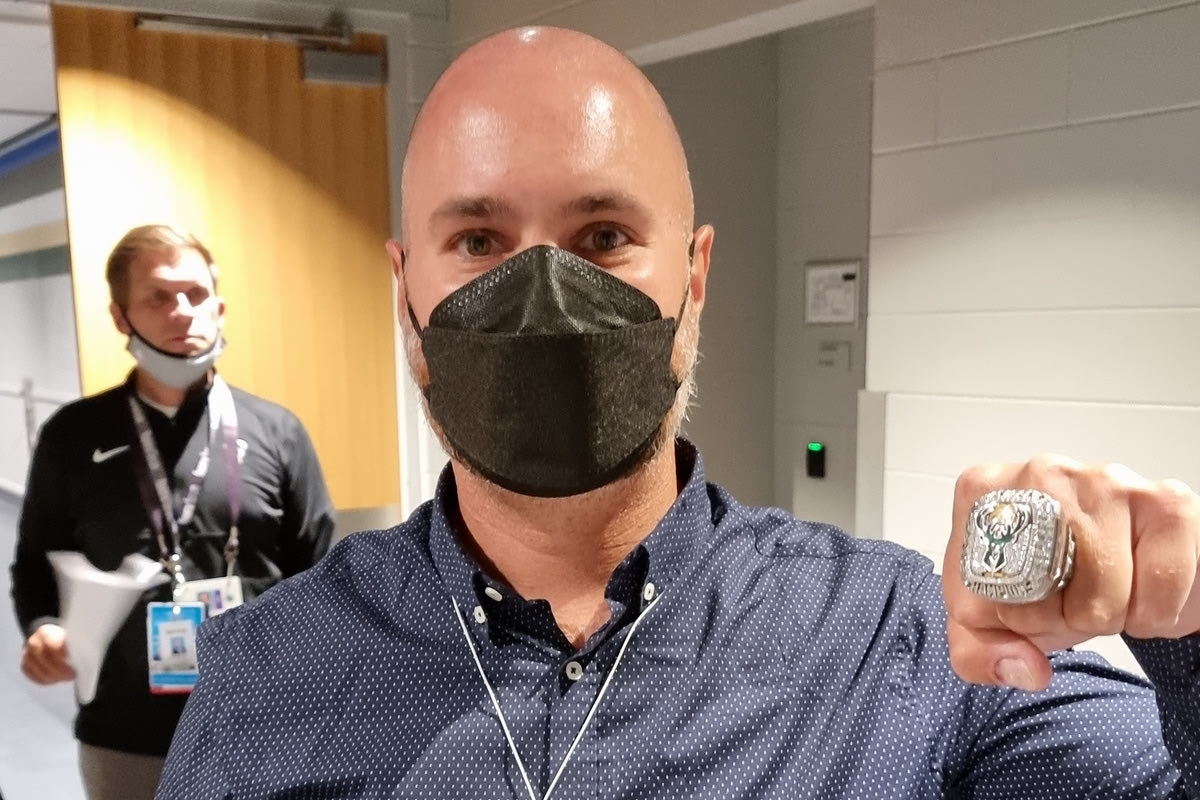Ο απεσταλμένος του SPORT24 στο Μιλγουόκι δεν έχασε την ευκαιρία να φορέσει στον δείκτη του αριστερού του χεριού αυτό για το οποίο παλεύουν όλοι οι παίκτες στο καλύτερο πρωτάθλημα μπάσκετ του κόσμου και το κατάφερε ο Greek Freak με τα ελάφια.