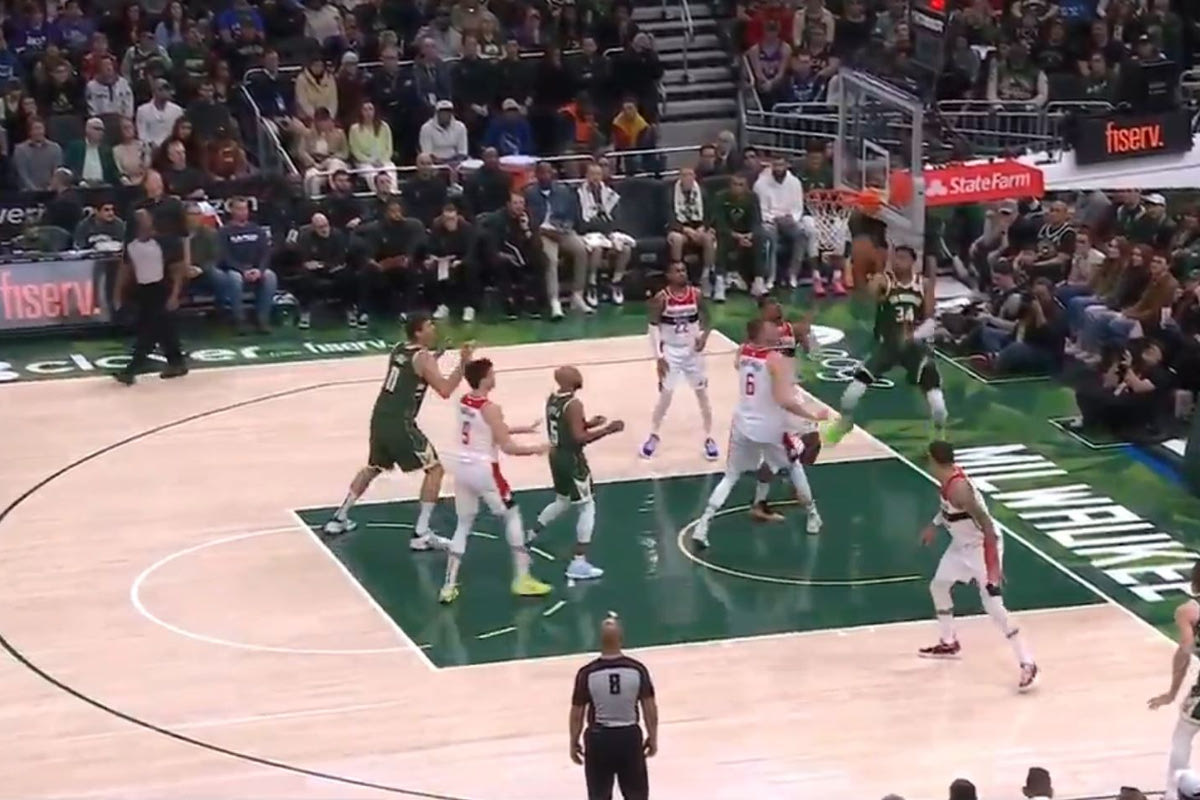 Περίπου στα μέσα στης 4ης περιόδου, ο σούπερ σταρ των Μιλγουόκι Μπακς πέτυχε ένα ανάποδο λέι απ και ξύπνησε μνήμες με μία από τις signature moves του Air. Δείτε το βίντεο και θα καταλάβετε.