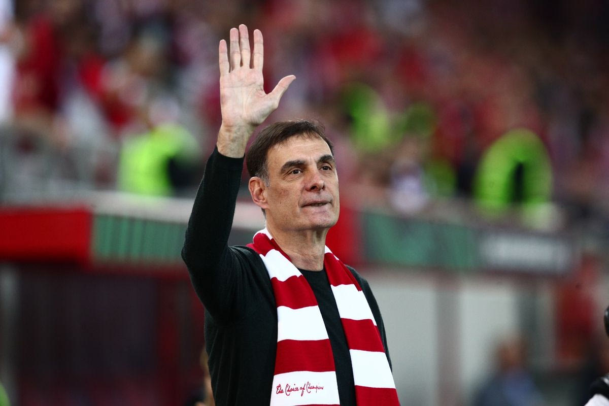 Ο Γιώργος Μπαρτζώκας με κασκόλ του Ολυμπιακού στο “Καραϊσκάκης” αποθεώθηκε από τους οπαδούς