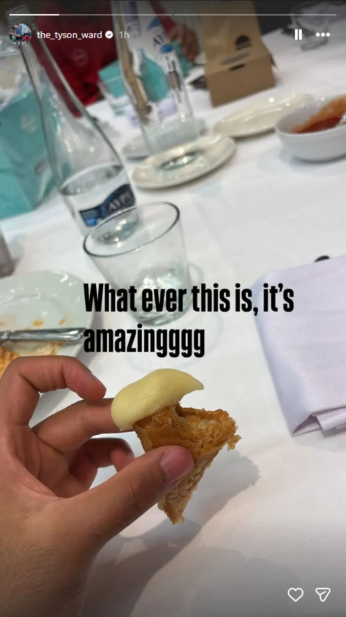 Ο Τάισον Γουόρντ δοκίμασε τρίγωνα Πανοράματος και ξετρελάθηκε. Το story του άσου των ερυθρολεύκων παρ’ όλο που δεν ξέρει πως ονομάζεται το παραδοσιακό γλυκό της Θεσσαλονίκης.