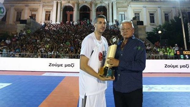 Ο Δημήτρης Διαμαντίδης έδωσε το "παρών" στην Σύρο, αποθεώθηκε από το κοινό και βραβεύτηκε για την προσφορά του στο ελληνικό μπάσκετ από τον Ντούσαν Ίβκοβιτς.
