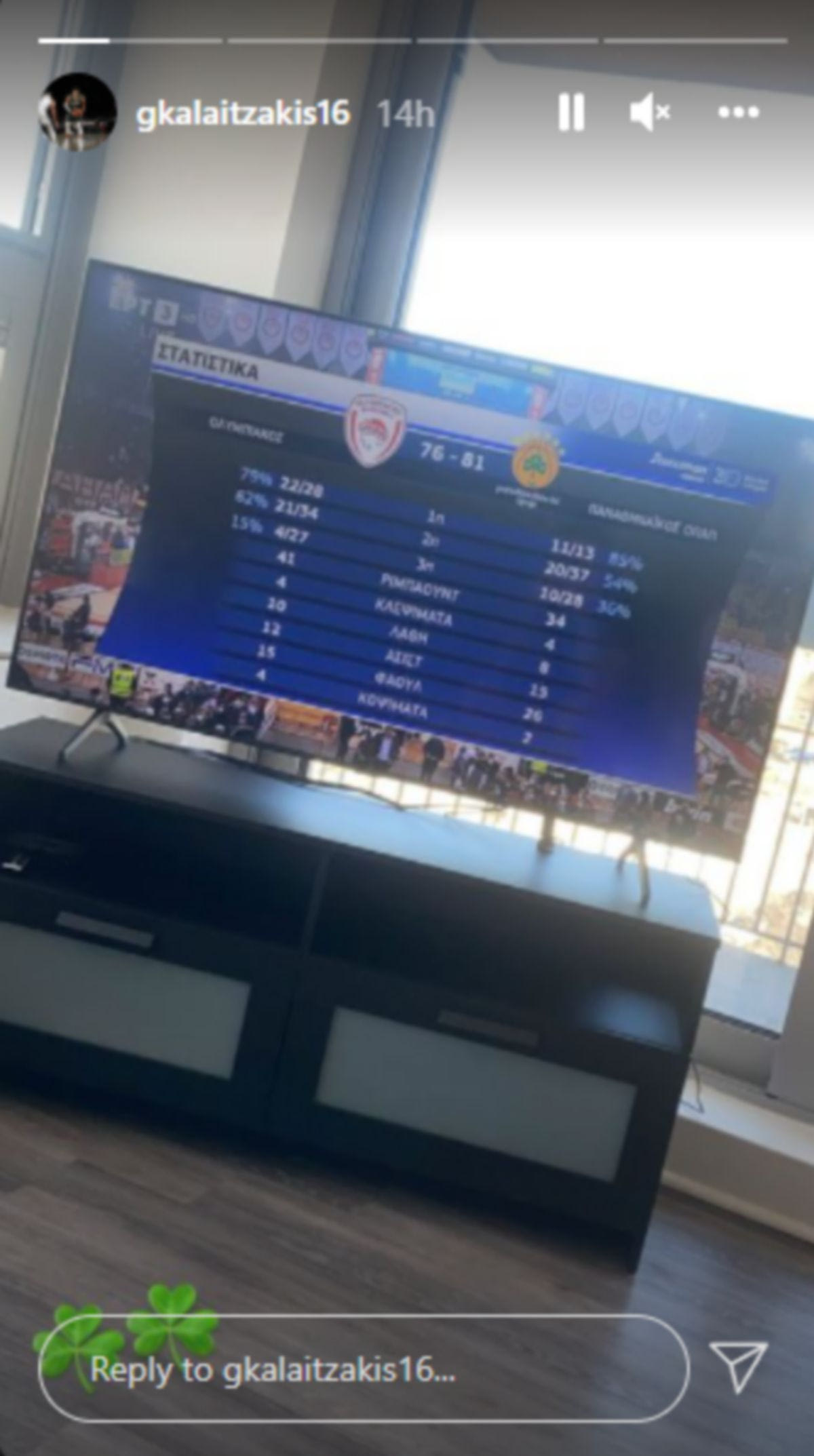 Έχοντας “πράσινο” παρελθόν, αφού ανδρώθηκε στον Παναθηναϊκό και μέχρι πέρυσι ανήκε στο “τριφύλλι”, ο 22χρονος γκαρντ ανέβασε από το Μιλγουόκι που βρισκόταν μία φωτογραφία στα stories του στο Instagram που έδειχνε το τελικό σκορ, το οποίο συνόδευσε με μερικά τριφύλλια, ενώ λίγο αργότερα αγωνίστηκε με τους Μπακς στην νίκη επί των Μάτζικ και είχε 5 πόντους.