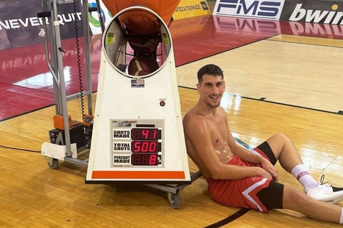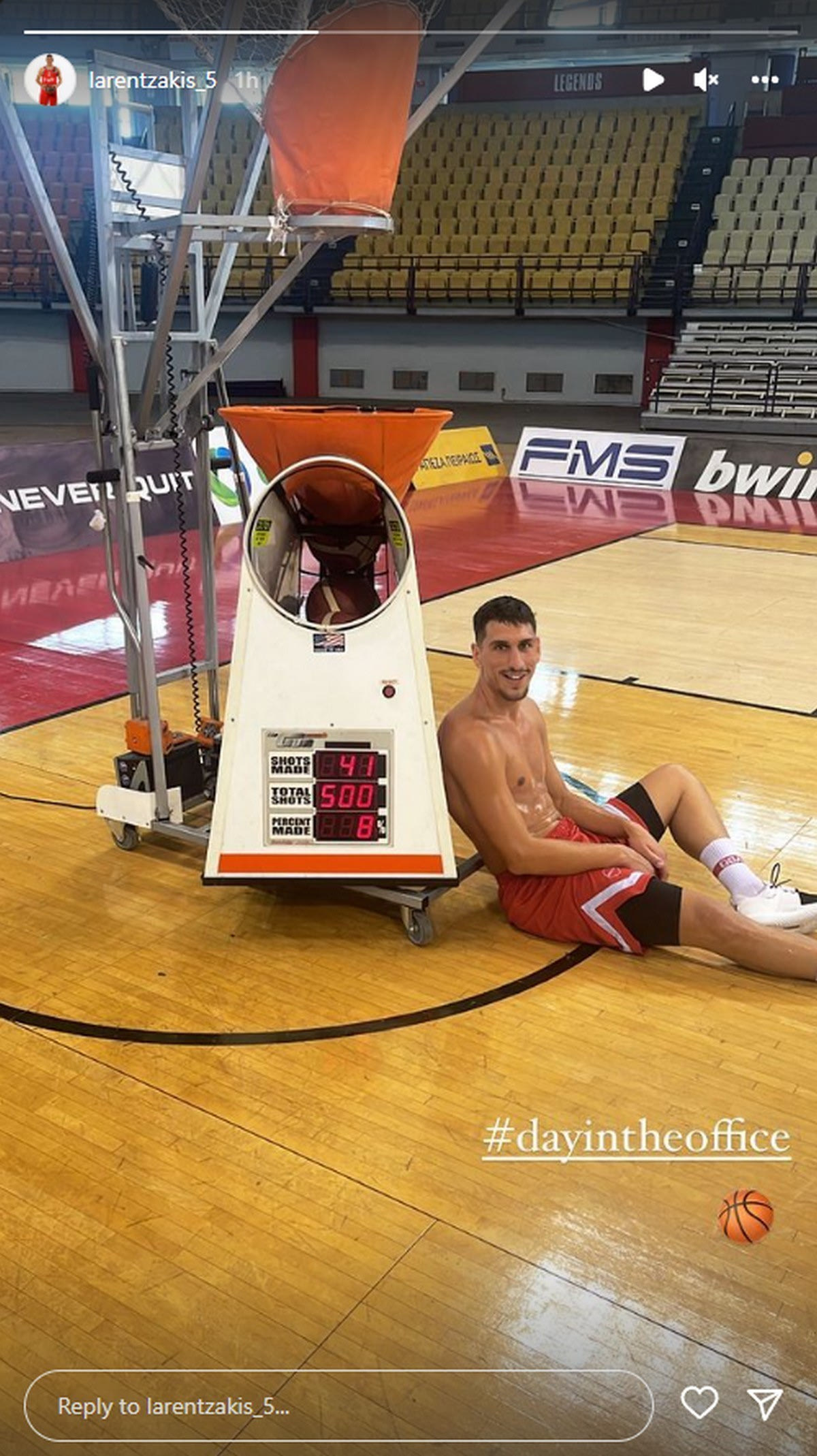 Ο Λαρεντζάκης έλιωσε στην προπόνηση στο ΣΕΦ και το μηχάνημα για τα σουτ τον… τρόλαρε