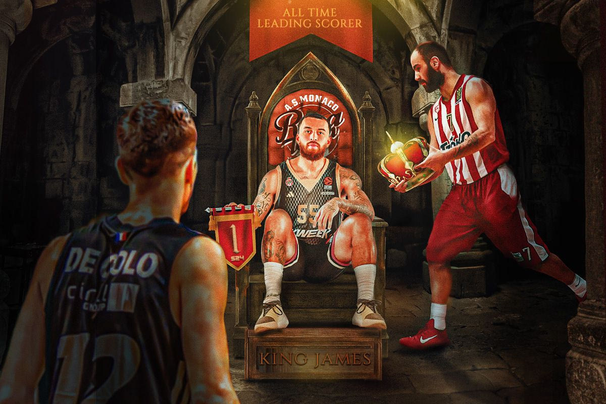 Ιστορικές στιγμές στο Πριγκιπάτο, καθώς ο Μάικ Τζέιμς εκθρόνισε τον Βασίλη Σπανούλη και έγινε ο πρώτος σκόρερ στην ιστορία της EuroLeague στη διάρκεια της αναμέτρησης της Μονακό με τον Ερυθρό Αστέρα για την 28η αγωνιστική.