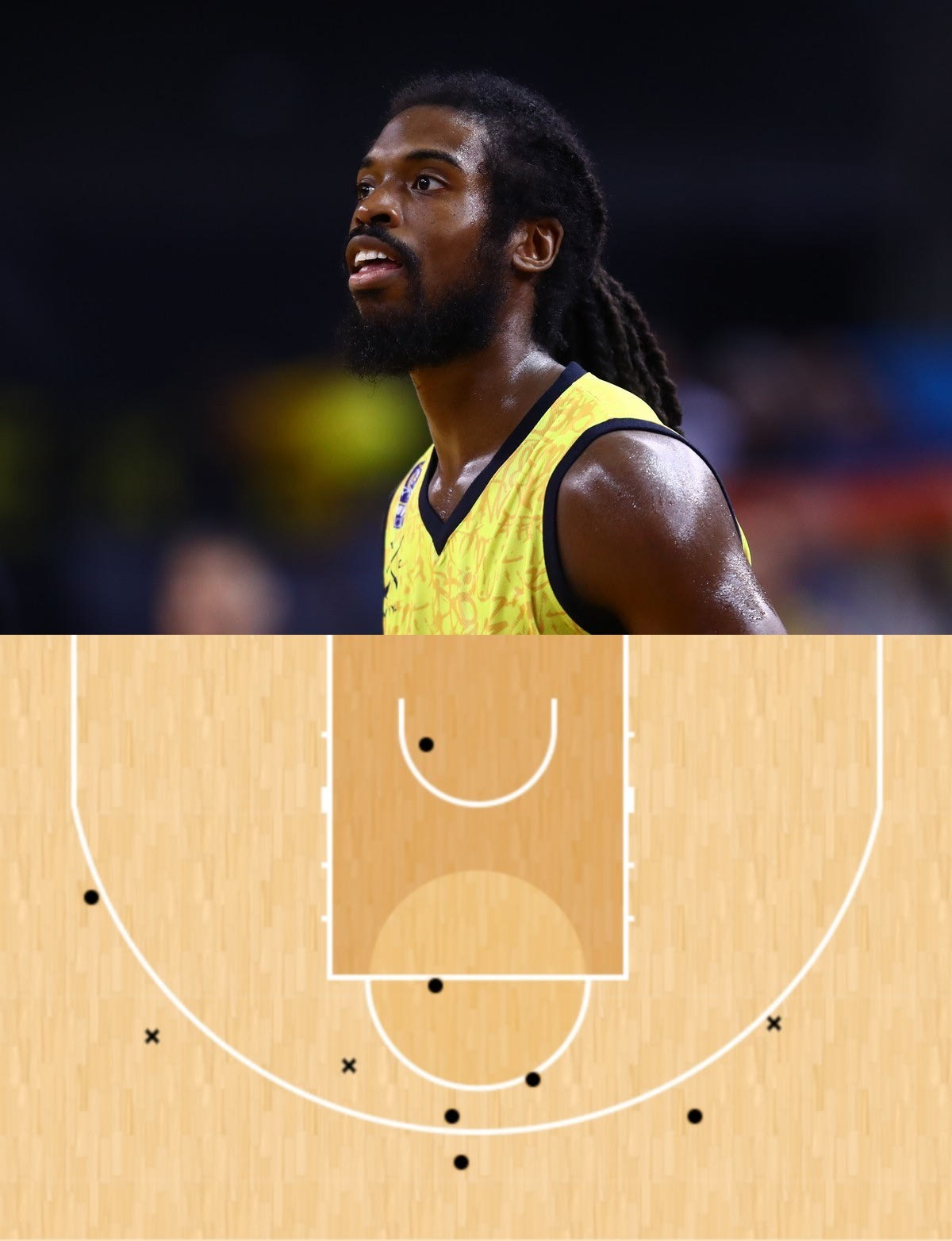 Το Shot Chart του Μάρκους Θόρντον κόντρα στην ΑΕΚ (πηγή hudlstat)