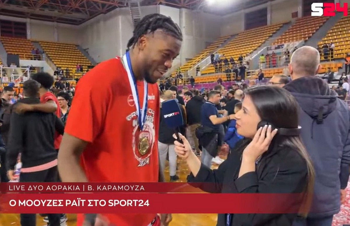 Ο Μόουζες Ράιτ εμφανίστηκε χαμογελαστός στην κάμερα του SPORT24 και μίλησε στην GAME NIGHT αναφορικά με την κατάκτηση του Κυπέλλου ΟΠΑΠ από τον Ολυμπιακό, στην πολύτιμη συνεισφορά του στον τελικό, στο τηλεφώνημα της μητέρας του και στην βοήθεια που λαμβάνει κάθε μέρα από τον Γιαννούλη Λαρεντζάκη.