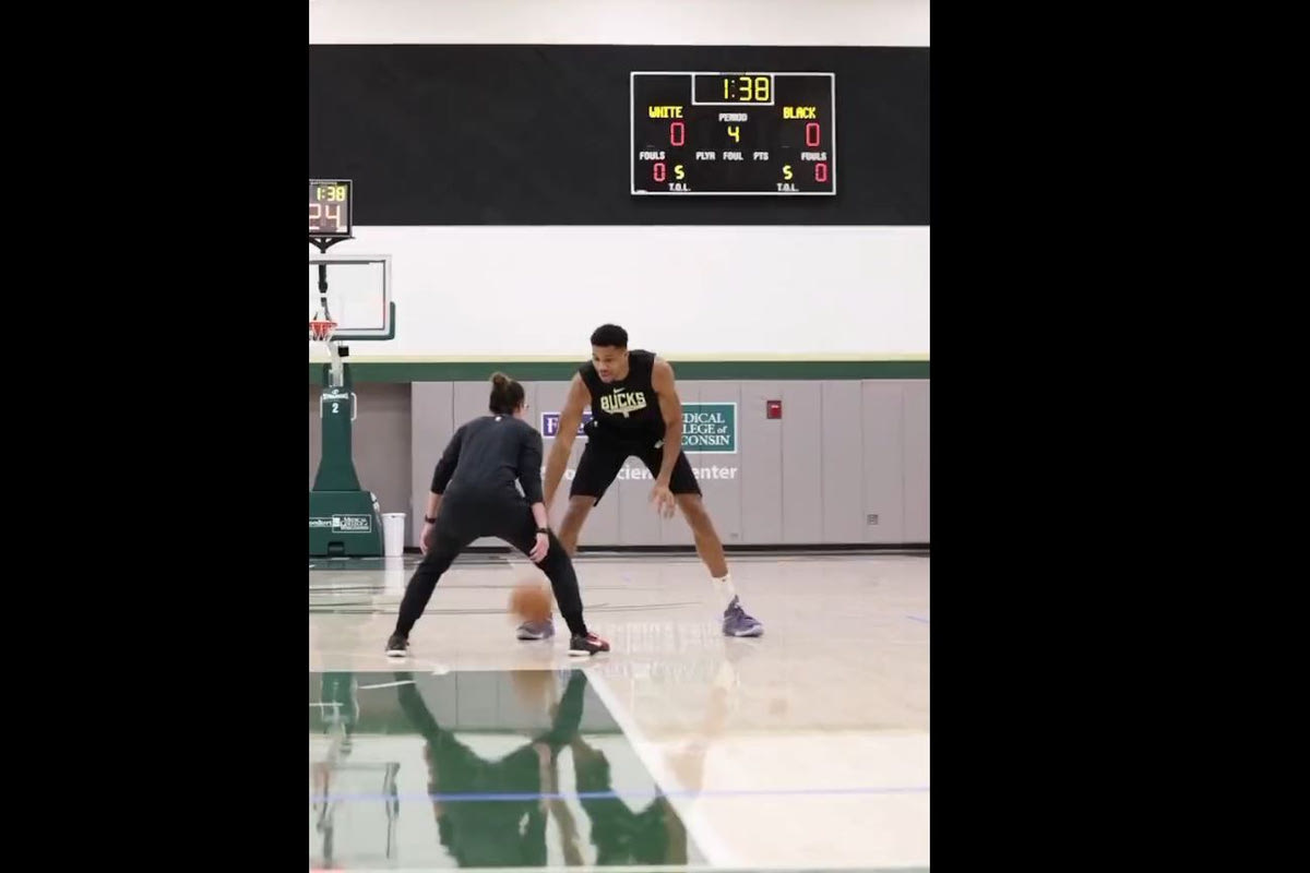 Ο Γιάννης Αντετοκούνμπο έπαιξε one-on-one με τη video coordinator των Μιλγουόκι Μπακς, Σίντεϊ Ντόμπνερ, και άρχισε να βάζει το ένα τρίποντο μετά το άλλο.