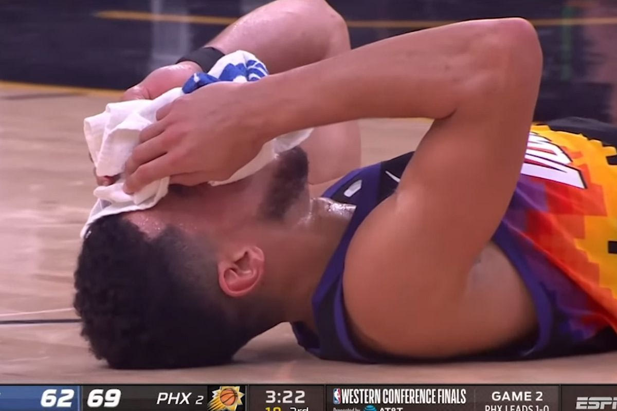 Μία περίεργη φάση εκτυλίχθηκε στο Game 2 των Σανς με τους Κλίπερς, αφού ο Ντέβιν Μπούκερ συγκρούστηκε σε μία προσπάθειά του πρόσωπο με πρόσωπο με τον Πάτρικ Μπέβερλι, με αποτέλεσμα να σπάει την μύτη του.