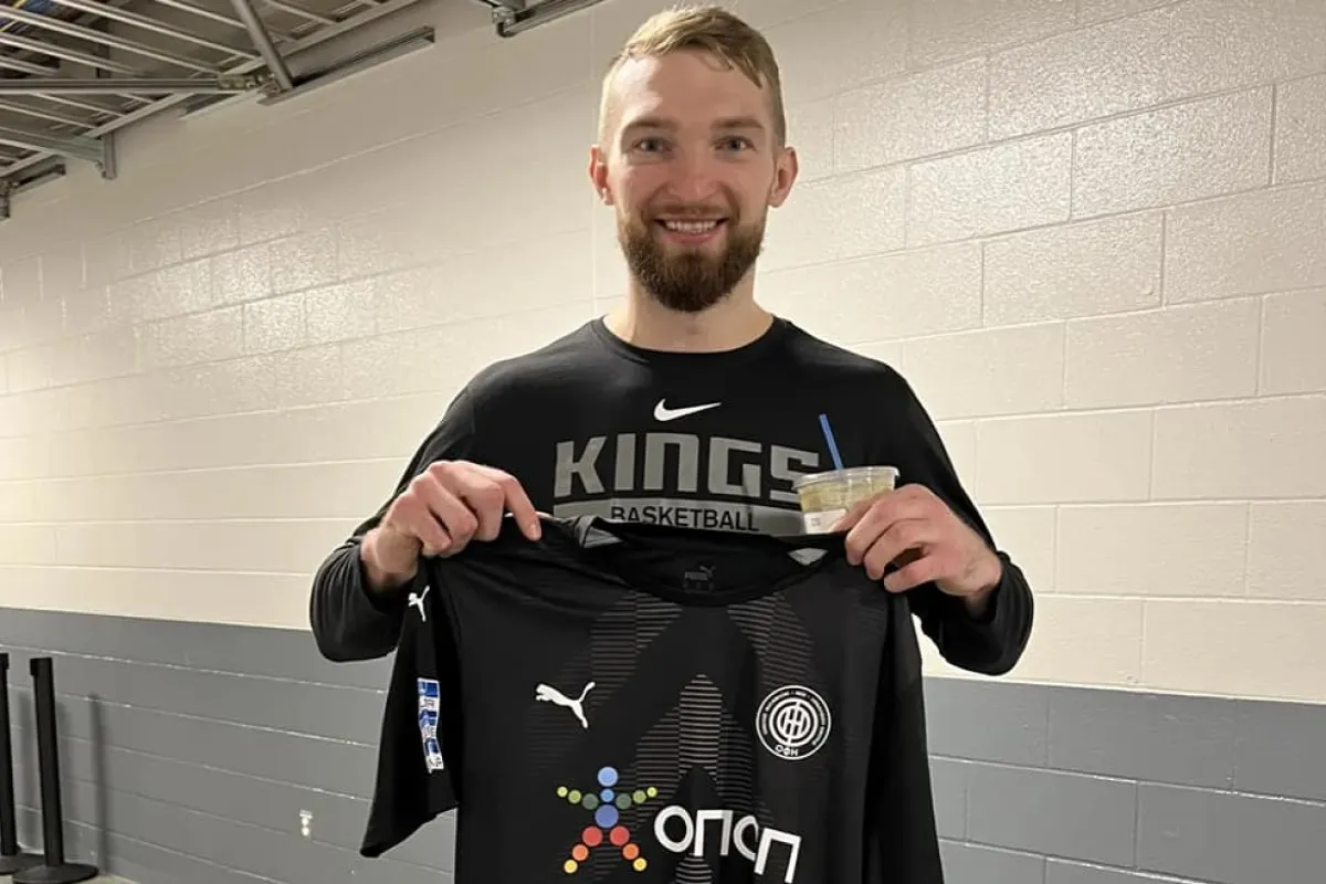 Μετά τον Κάιλ Κούζμα των Γουίζαρντς ήρθε η σειρά του Ντομάντας Σαμπόνις τον Κινγκς να ποζάρει με την ποσοφαιρική φανέλα του ΟΦΗ.