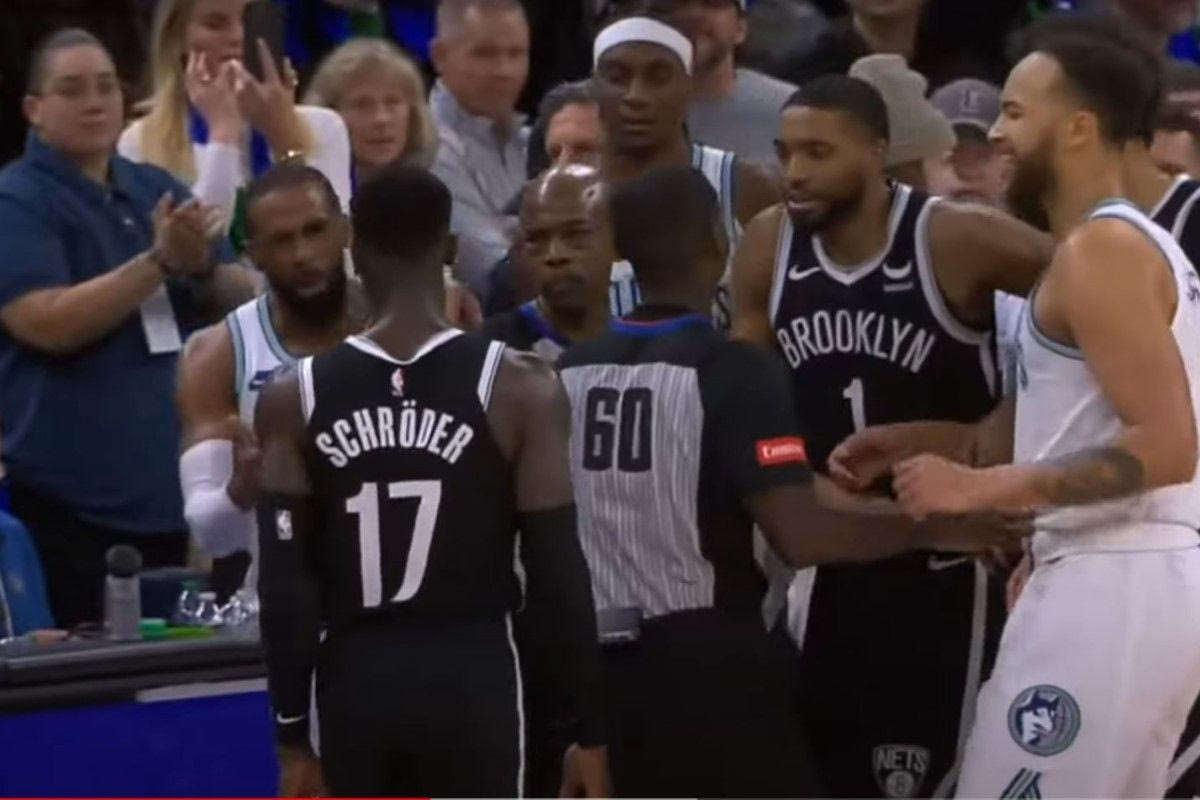 Ένα τρίποντο που επιχείρησε ο Μάικ Κόνλι 22.5" πριν το τέλος του αγώνα των Τίμπεργουλβς με τους Νετς έκανε έξαλλο τον Ντένις Σρούντερ, που έσπρωξε τον αντίπαλό του.