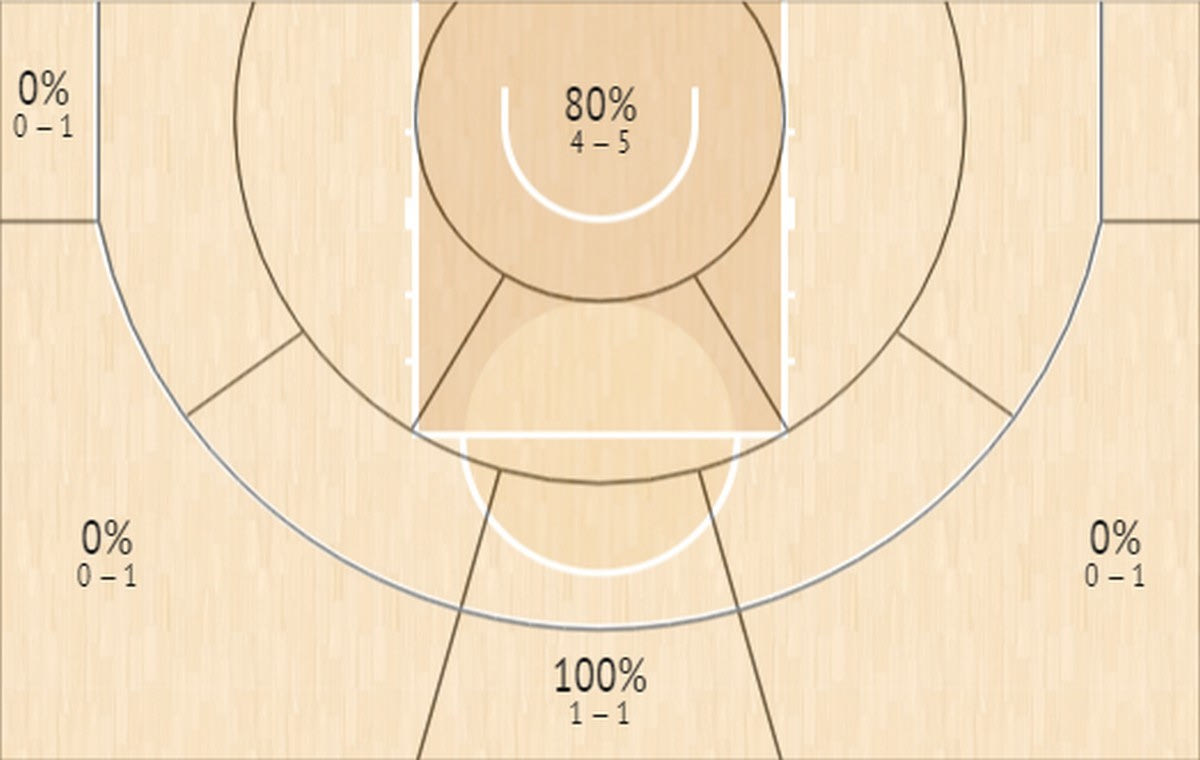 Σύμφωνα με το Instat Scout, είχαν μόλις 2/8 σουτ σε καταστάσεις off screen (βγαίνοντας από σκριν), με τα 7 από τα 8 σουτ να είναι μαρκαρισμένα, 3/15 σουτ σε καταστάσεις Catch and Shoot (σουτ από στάση μετά από πάσα) με τα 10 από αυτά να είναι μαρκαρισμένα και μόλις 1/9 σουτ σε καταστάσεις Catch and Drive (Όπου ένας παίκτης ξεμαρκάρεται και μετά είτε ορμά προς το καλάθι, είτε σουτάρει μετά από ντρίμπλα), με όλα αυτά τα σουτ να είναι μαρκαρισμένα.
