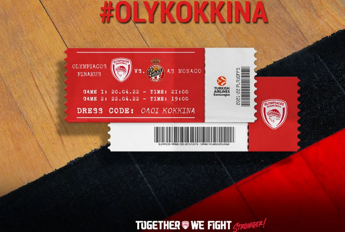 Σε ένα κατακόκκινο ΣΕΦ στοχεύει ο Ολυμπιακός στα δύο ματς των playoffs κόντρα στη Μονακό, με την ΚΑΕ να ενημερώνει για ένα άτυπο dresscode, παροτρύνοντας τον κόσμο της να φορέσει κόκκινα μπλουζάκια.