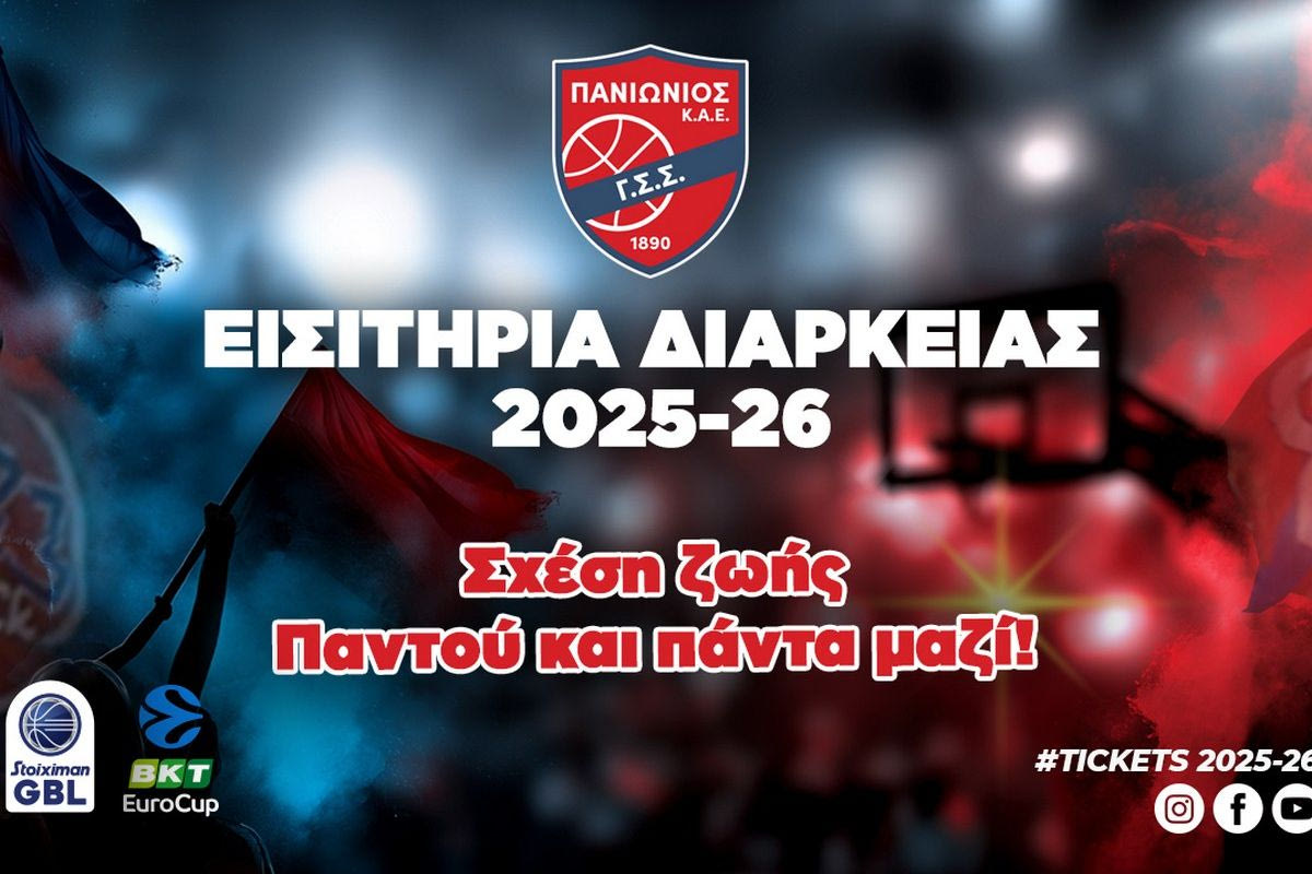 Ο Πανιώνιος ανακοίνωσε ότι άρχισε η διάθεση των εισιτηρίων διαρκείας για τη σεζόν 2025/26, που θα βρει τους κυανέρυθρους να παλεύουν σε Stoiximan GBL και EuroCup.