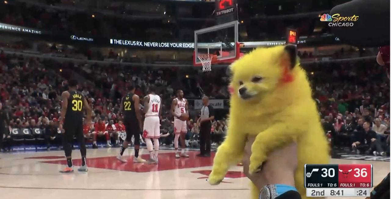 Αυτό που σε πρώτη φάση έμοιαζε με λούτρινο κουκλάκι, αλλά τελικά αποδείχθηκε πως είναι σκύλος-σωσίας του Πίκατσου έμελλε να κλέψει τις εντυπώσεις στο ματς των Μπουλς με τους Τζαζ στο Σικάγο. Ένας οπαδός που καθόταν court-side είχε φέρει μαζί του στο United Center το σκυλάκι του, αφού πρώτα βέβαια το είχε βάψει κίτρινο για να μοιάζει με το γνωστό Πόκεμον.