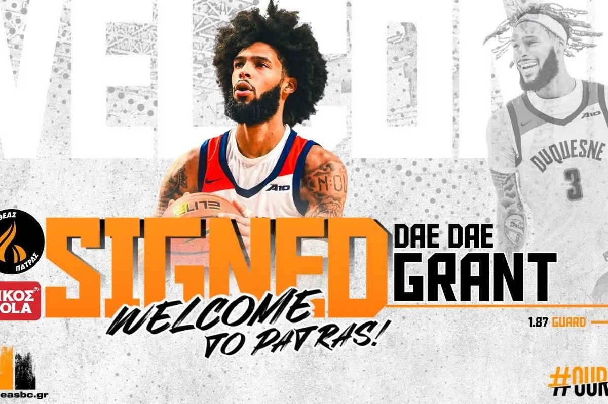 “Η ΚΑΕ Προμηθέας Πάτρας Βίκος Cola βρίσκεται στην ευχάριστη θέση να ανακοινώσει την έναρξη της συνεργασίας της με τον αθλητή Dae Dae Grant, ο οποίος θα ενισχύσει την περιφερειακή γραμμή της ομάδας μας μέχρι το τέλος της σεζόν.