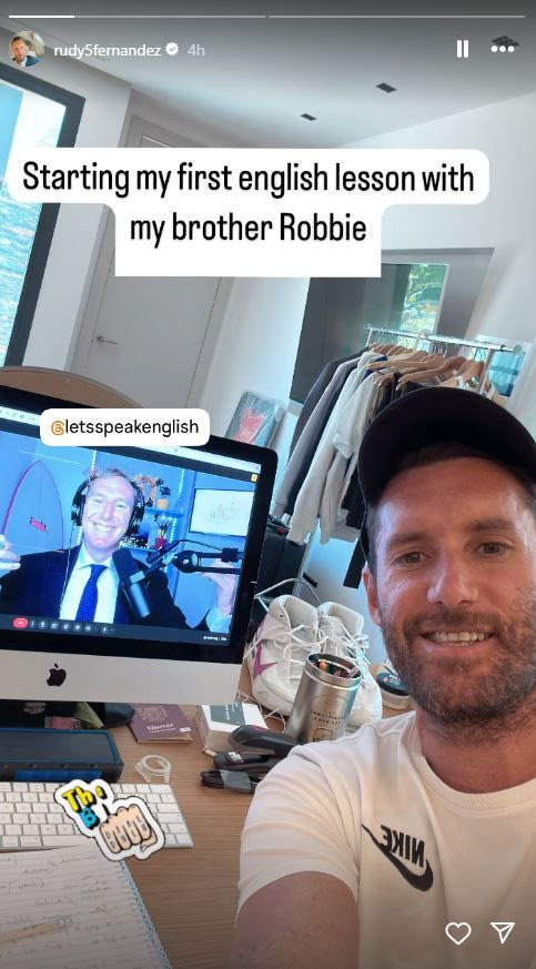 Έχοντας αγωνιστεί για τέσσερις σεζόν στο EuroCup και για άλλες 14 στην EuroLeague, ο Ρούντι είχε φυσικά καθημερινή τριβή με την αγγλική γλώσσα. Ωστόσο, όπως φαίνεται, αποφάσισε τώρα να τελειοποιήσει τις γνώσεις του. “Ξεκίνησα το πρώτο μου μάθημα αγγλικών με τον φίλο μου τον Ρόμπι” έγραψε ενδεικτικά σε ένα story στο Instagram, ποζάροντας, μάλιστα, με ένα πλατύ χαμόγελο.