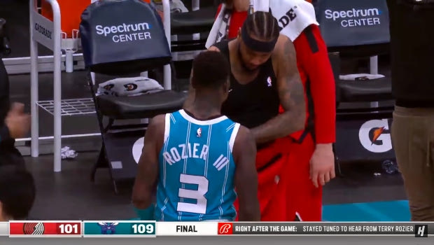 Οι Χόρνετς επικράτησαν των Μπλέιζερς 109-101, με τον Τέρι Ροζίερ να πραγματοποιεί σπουδαία εμφάνιση, καθώς ολοκλήρωσε το ματς έχοντας 34 πόντους, από 6/11 δίποντα, 7/13 τρίποντα, με 10 ασίστ και 8 ριμπάουντ.